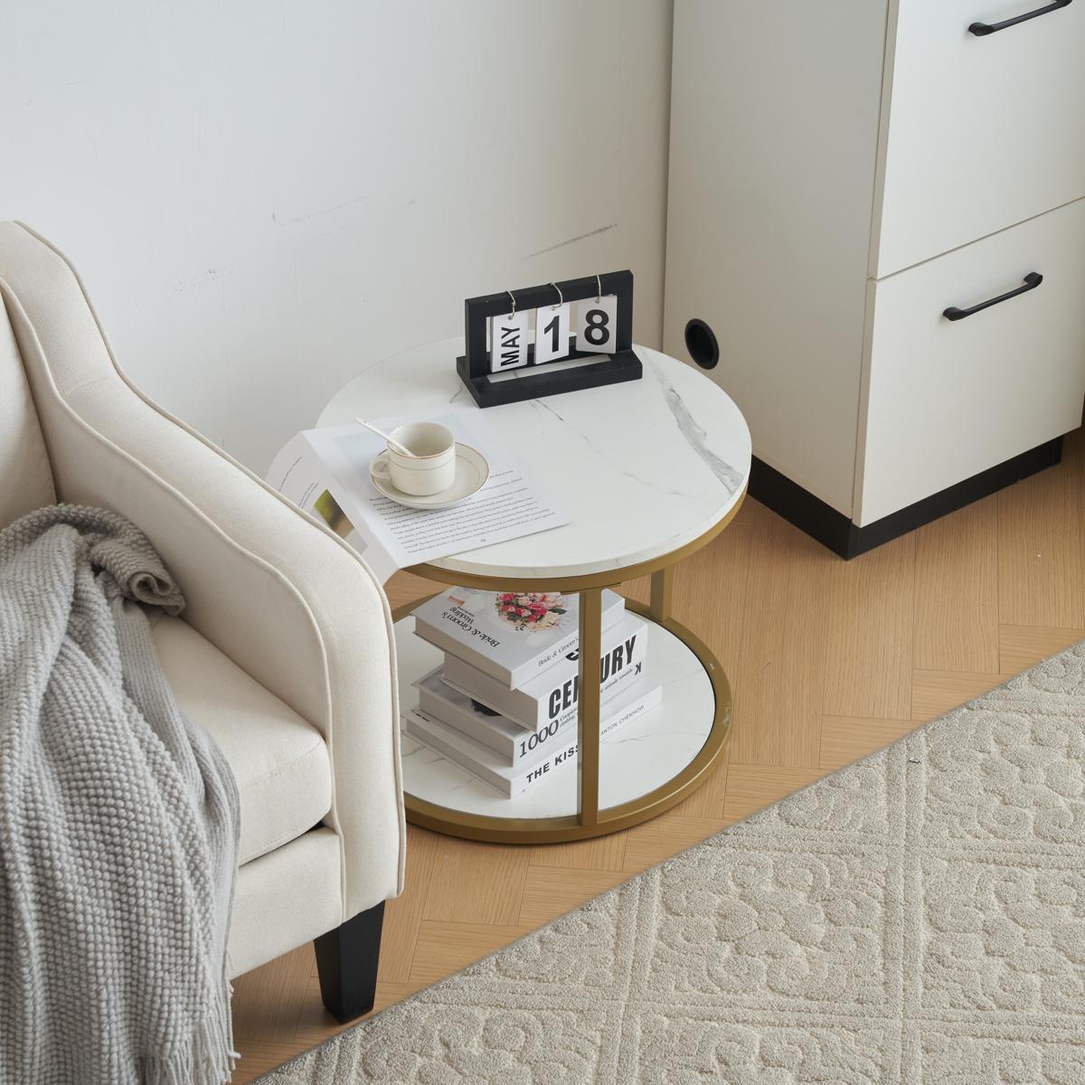 【洗練されたデザイン】大理石の贅沢な天板と洗練された金属脚が、シンプルながら美しいデザインを形作り、お部屋のインテリアを一層スタイリッシュに彩ります。滑らかな曲線と円形のフォルムは、従来のテーブルのイメージを破り、コンパクトなサイズでどの場所にも調和して配置できます。