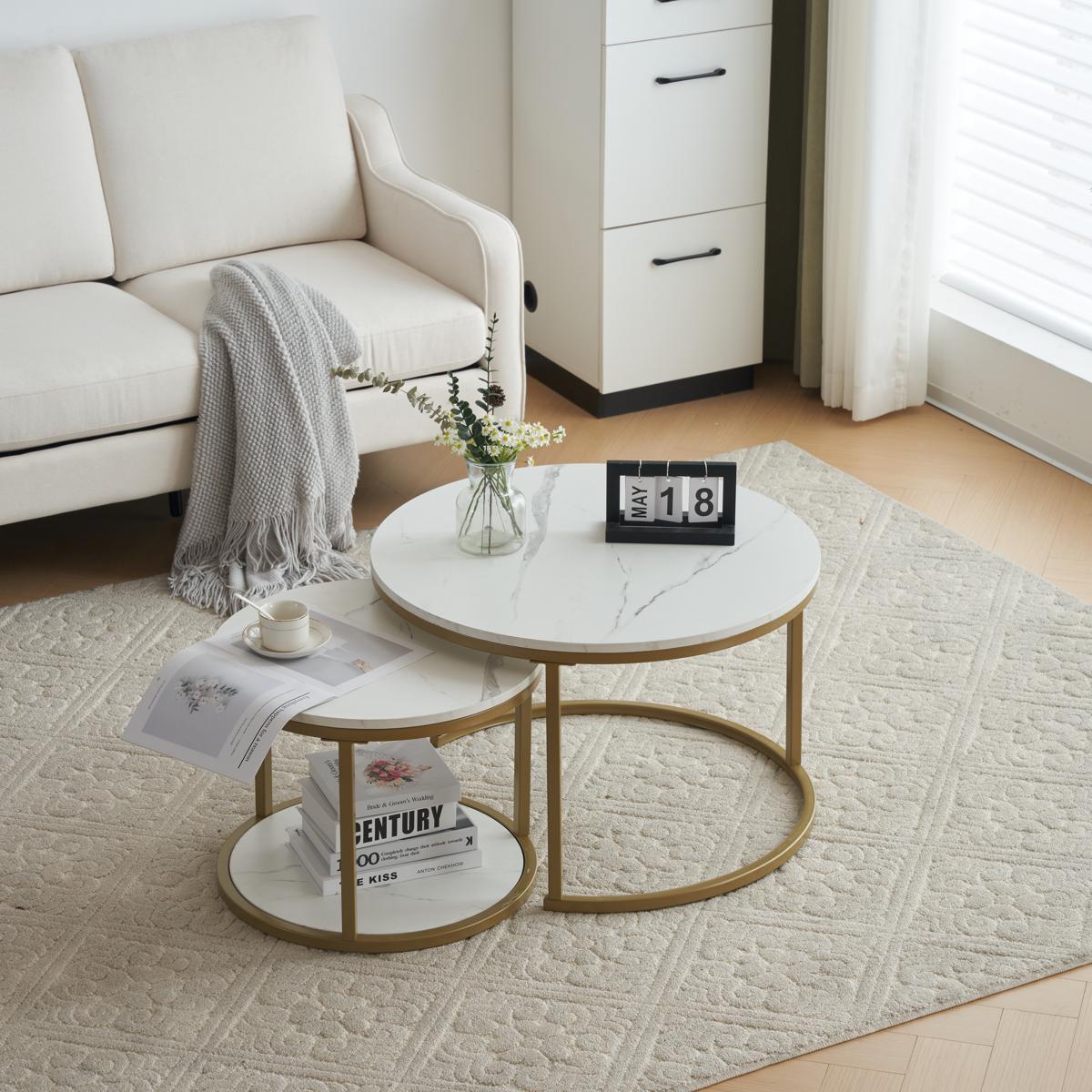 新作 ホワイトネストテーブル ローテーブル センターテーブル 大理石柄 大理石調 北欧風 シンプル おしゃれ モダン ゴールド リビングテーブル 人気 White Casual