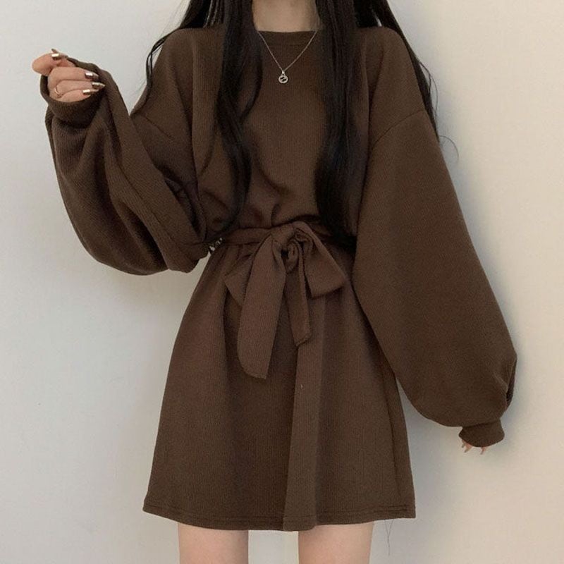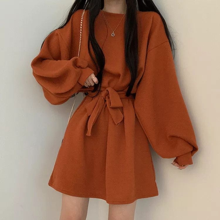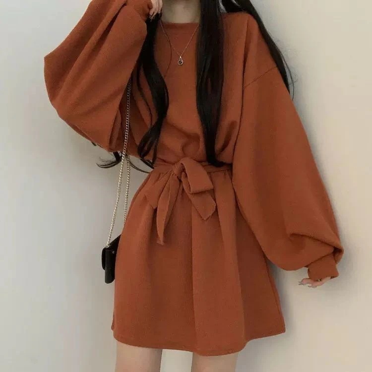 怠惰風 長袖ワンピース 秋冬新しい レディース 着痩せ パフスリーブ Aラインワンピース ドレス 学生 その他 ワンピース ドレス