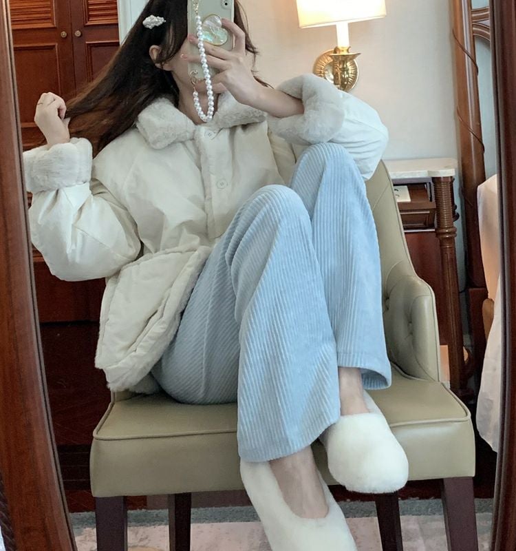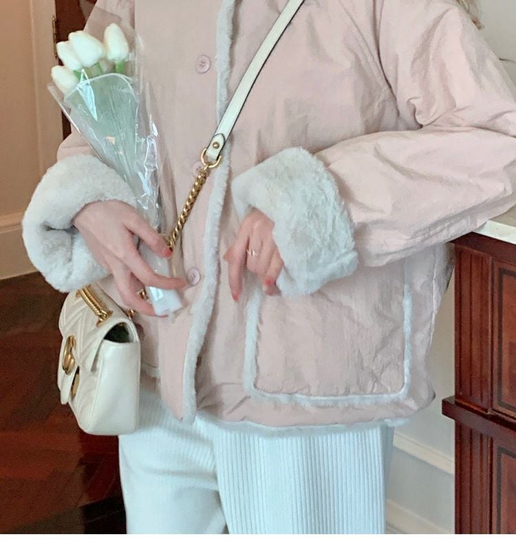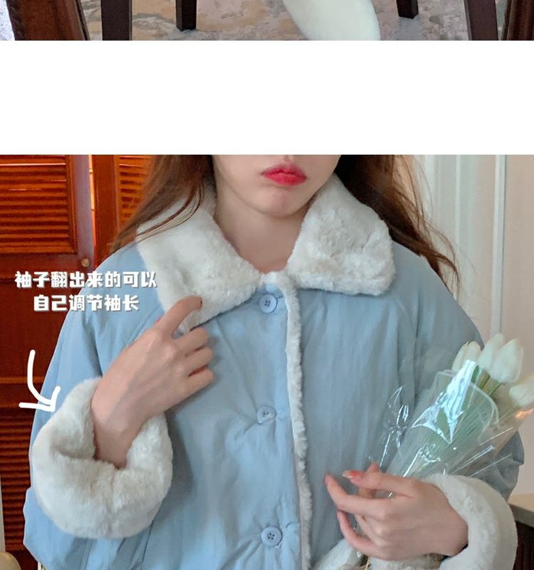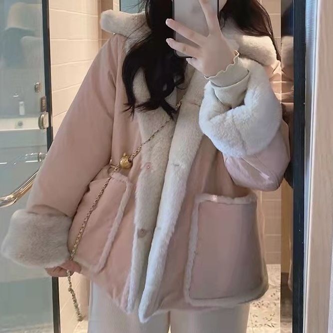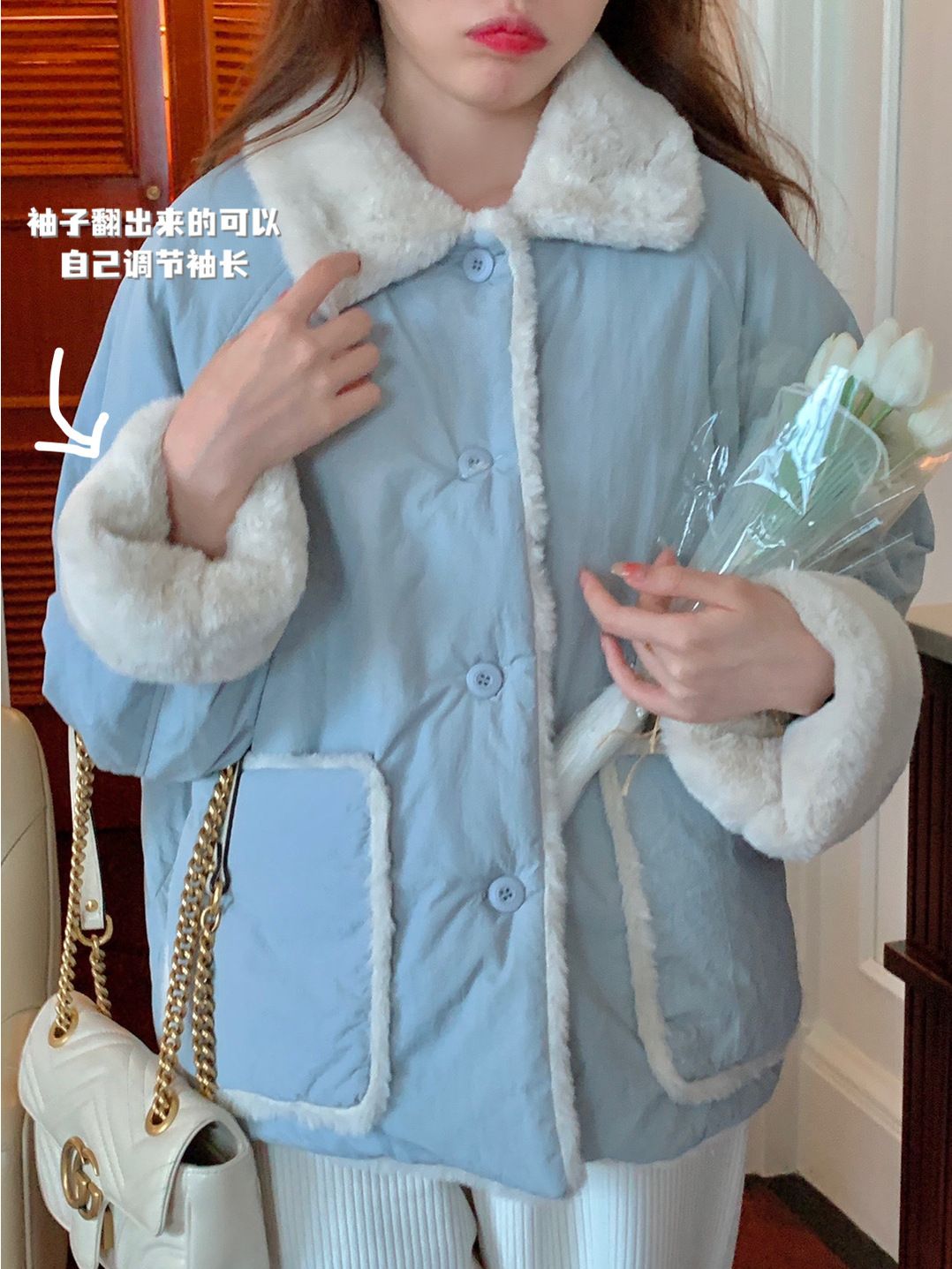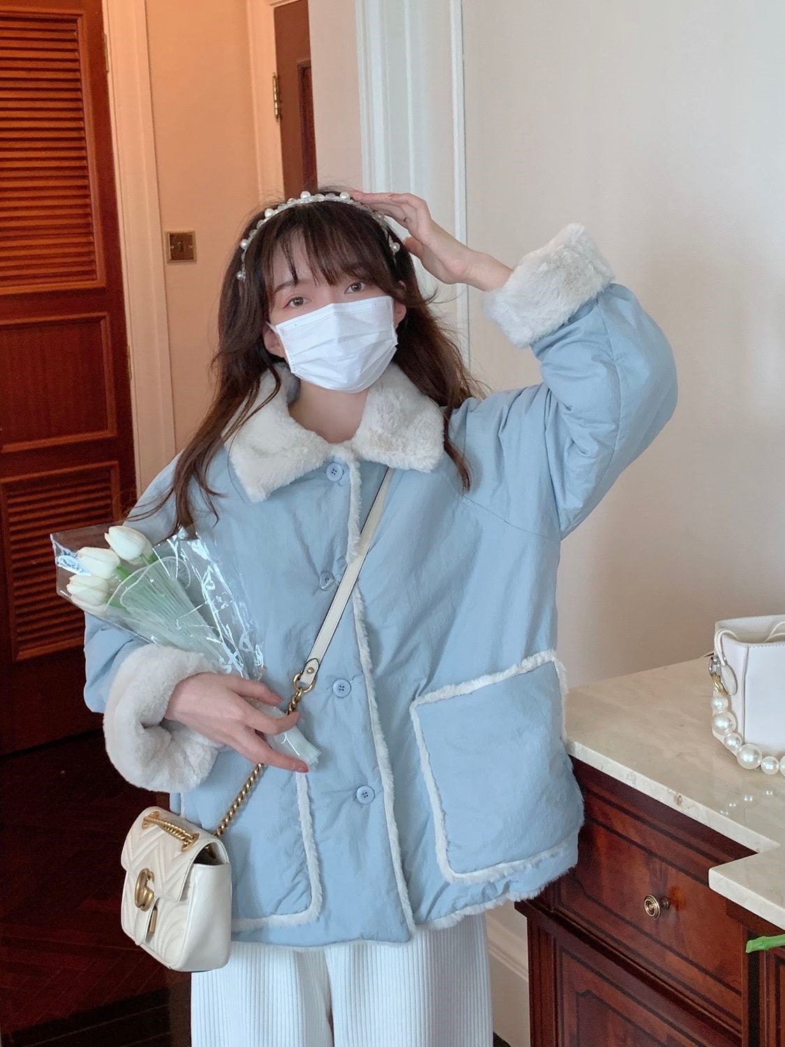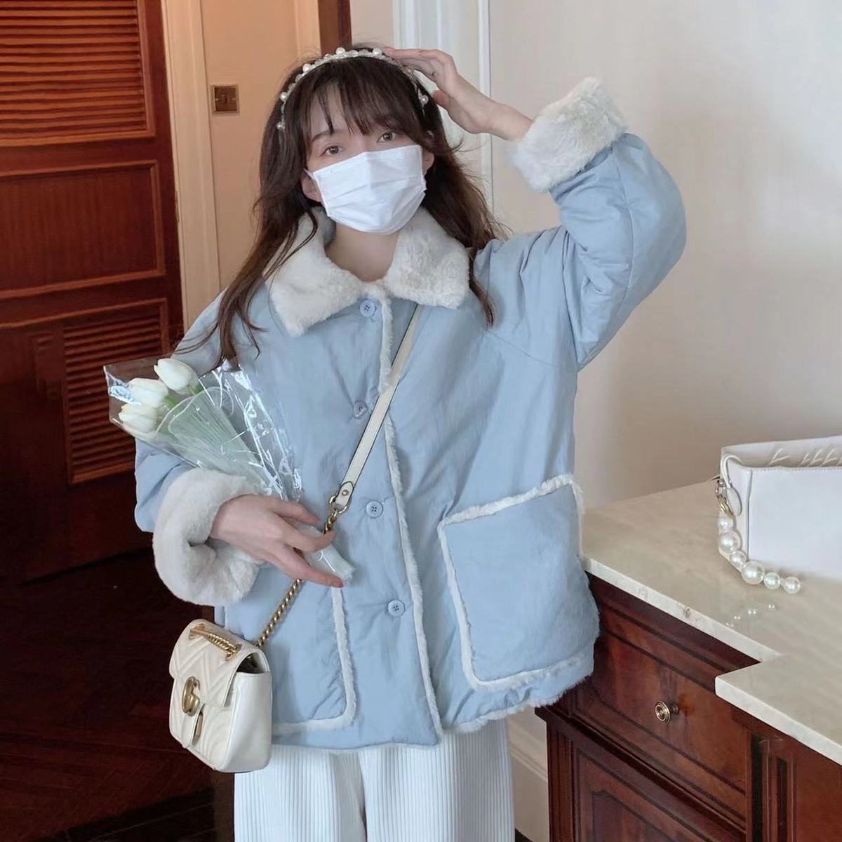 スウェット 2023秋冬の新型の大きい袋の両面を着ます学生のかわいい厚手の甘い綿の服の小さい外套女 トレンチコート