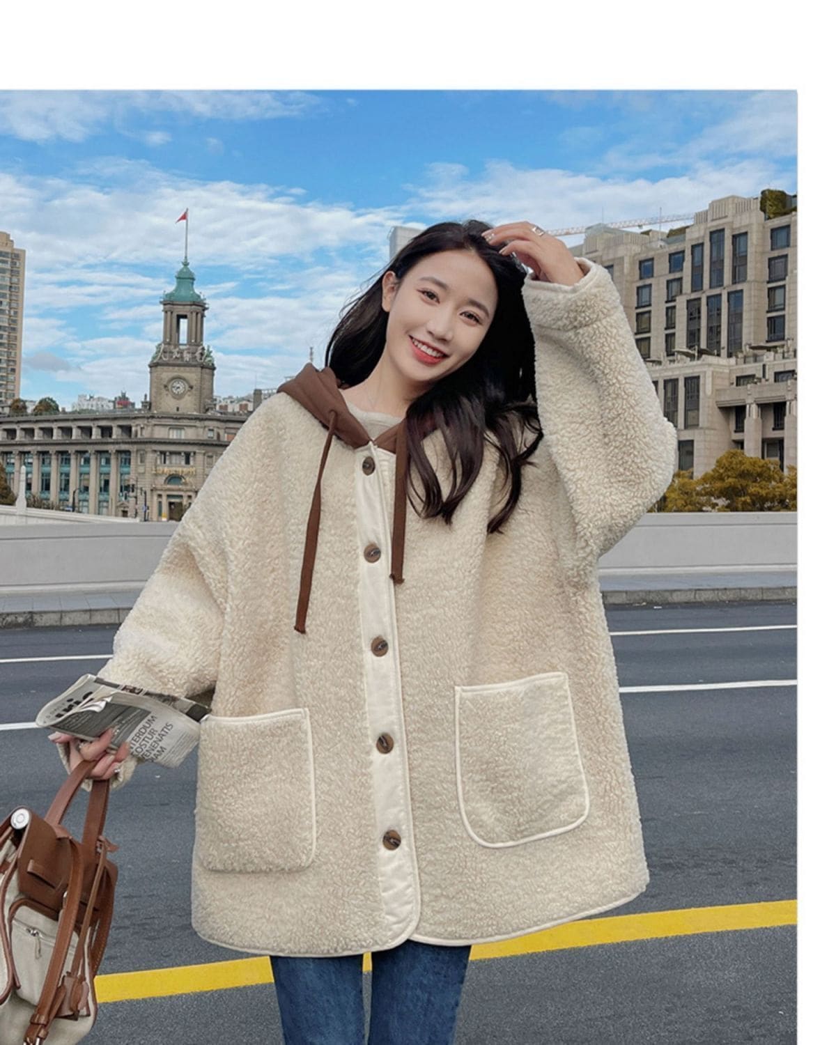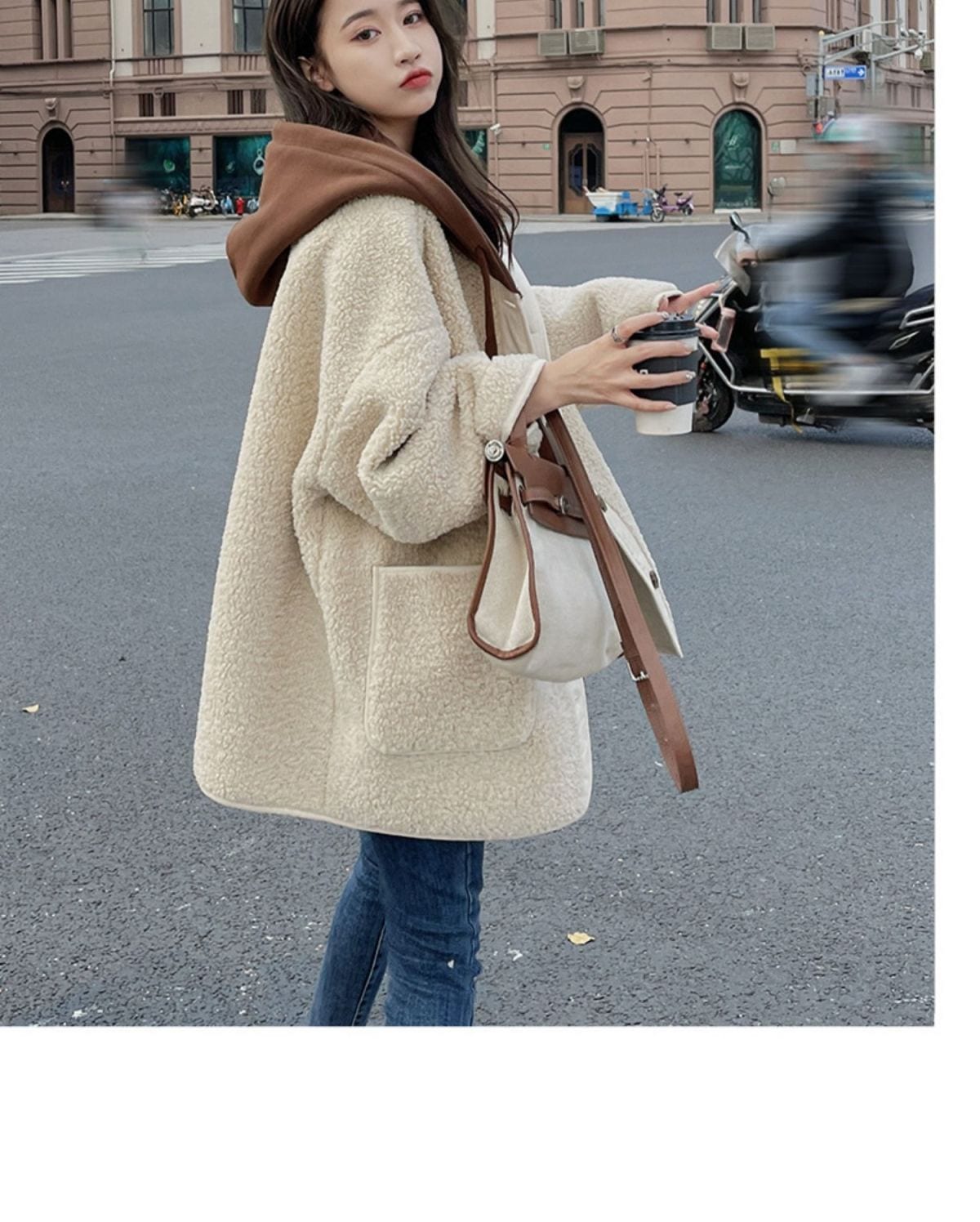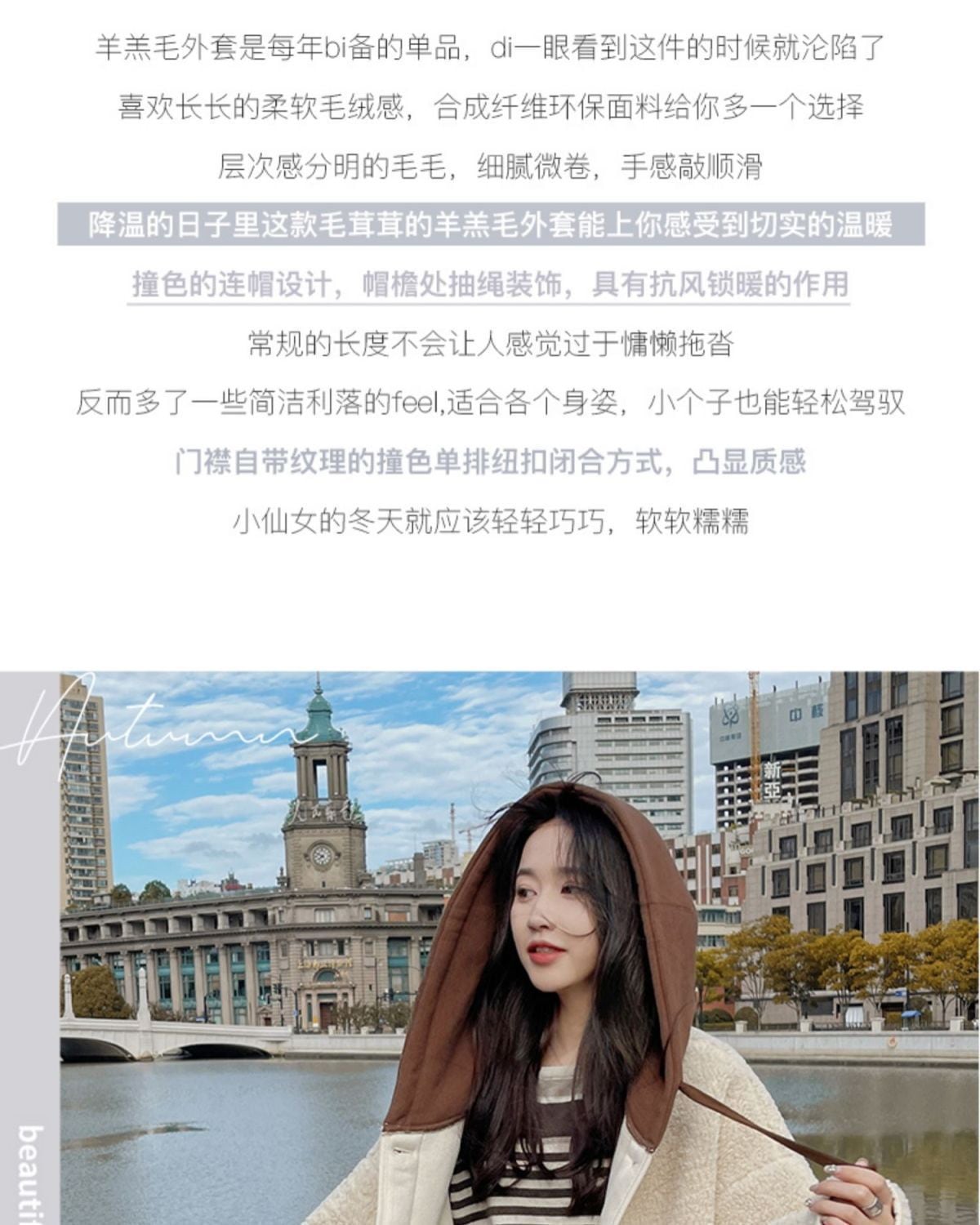 ラシャ 毛皮一体ラムコート秋冬2024新モデル韓系ゆったりパッチワークデザイン感フード付き厚手の上着 トレンチコート
