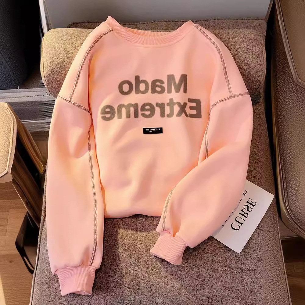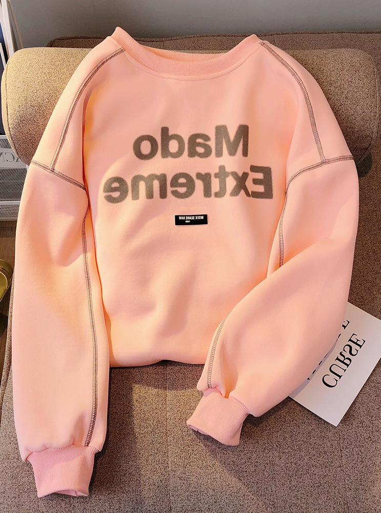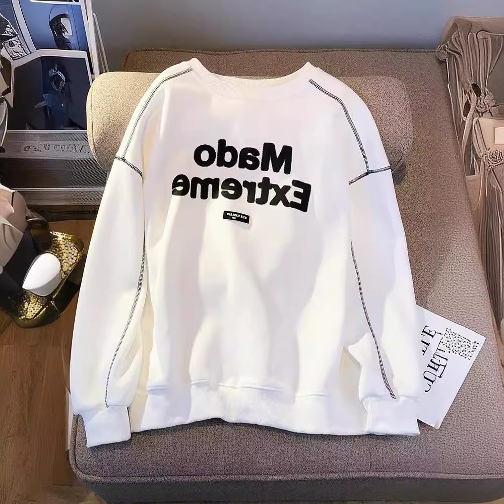 秋冬のインナーに日系アルファベットの丸首の白い衛衣女性の薄手の新型ゆったりとした小柄なデザイン感が人気 Tシャツ カットソー
