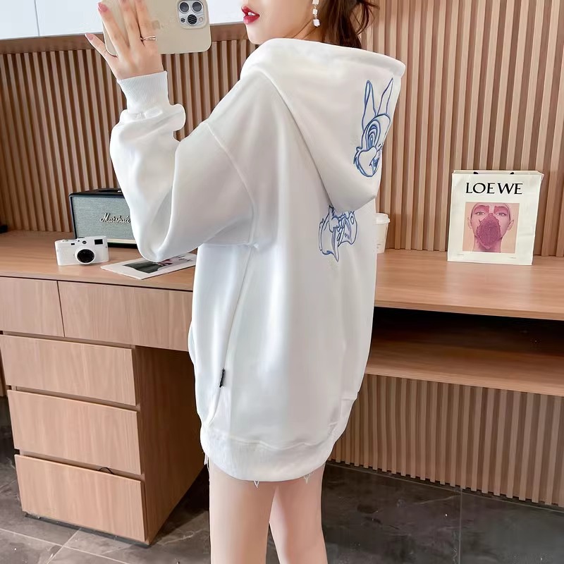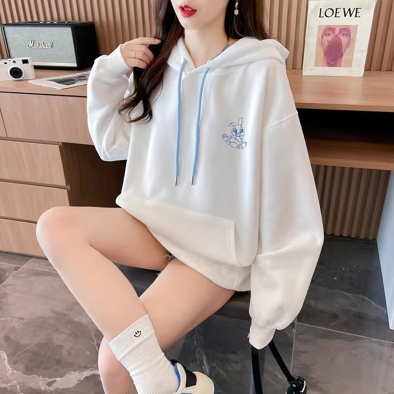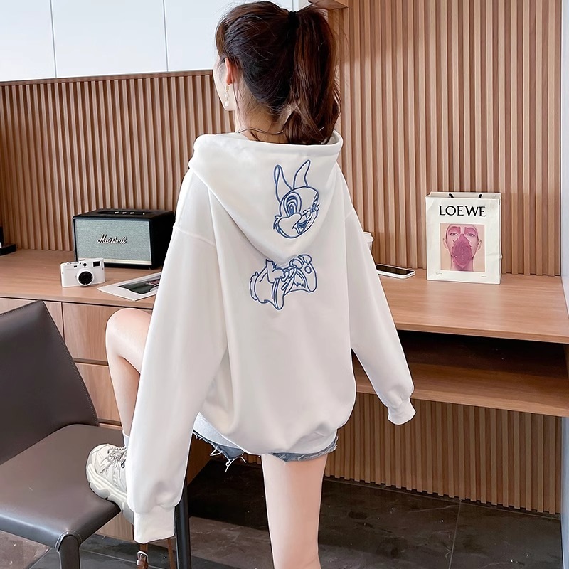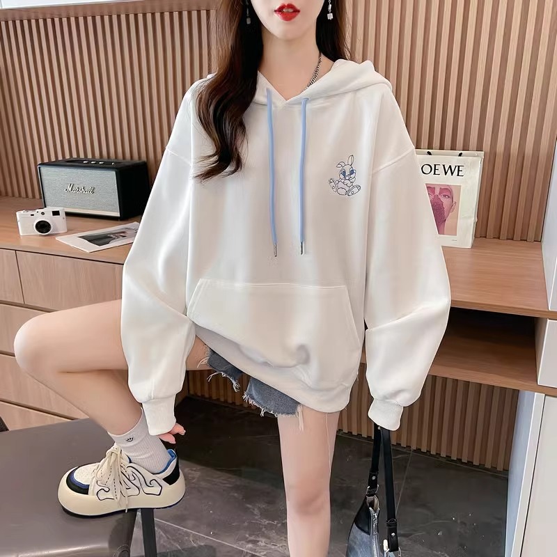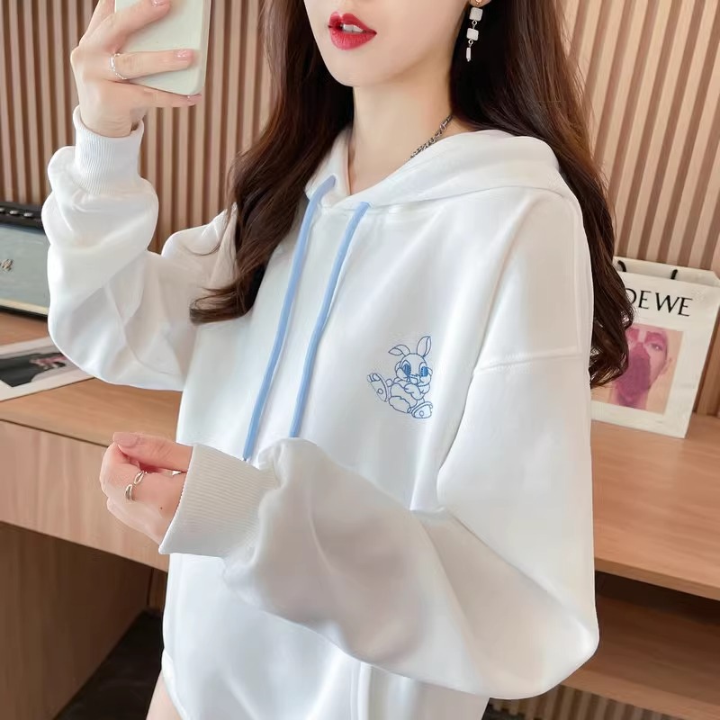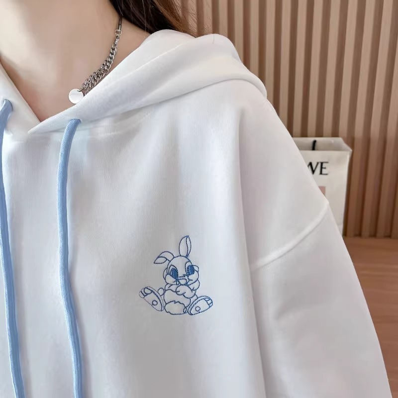 キャラクター刺繍うさぎ帽子パーカーレディース秋冬新作かわいい風デザイン感たっぷりのトップス Tシャツ カットソー