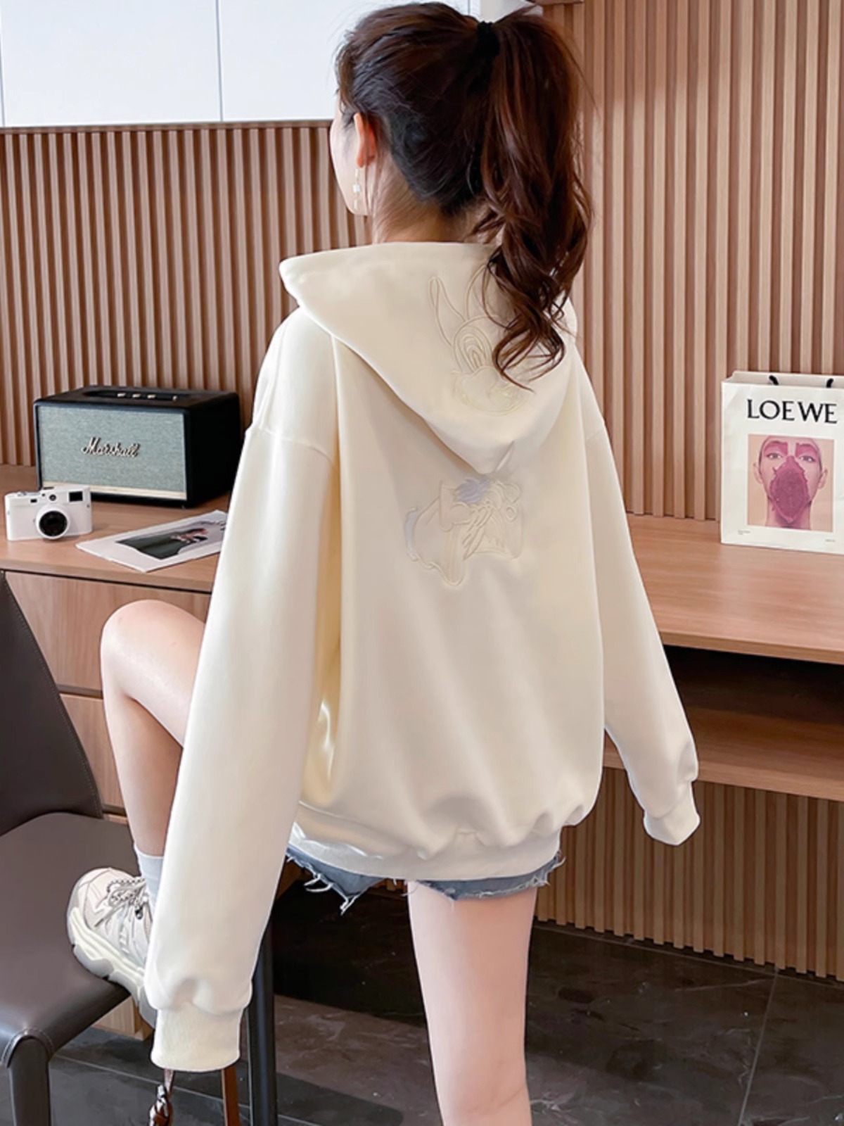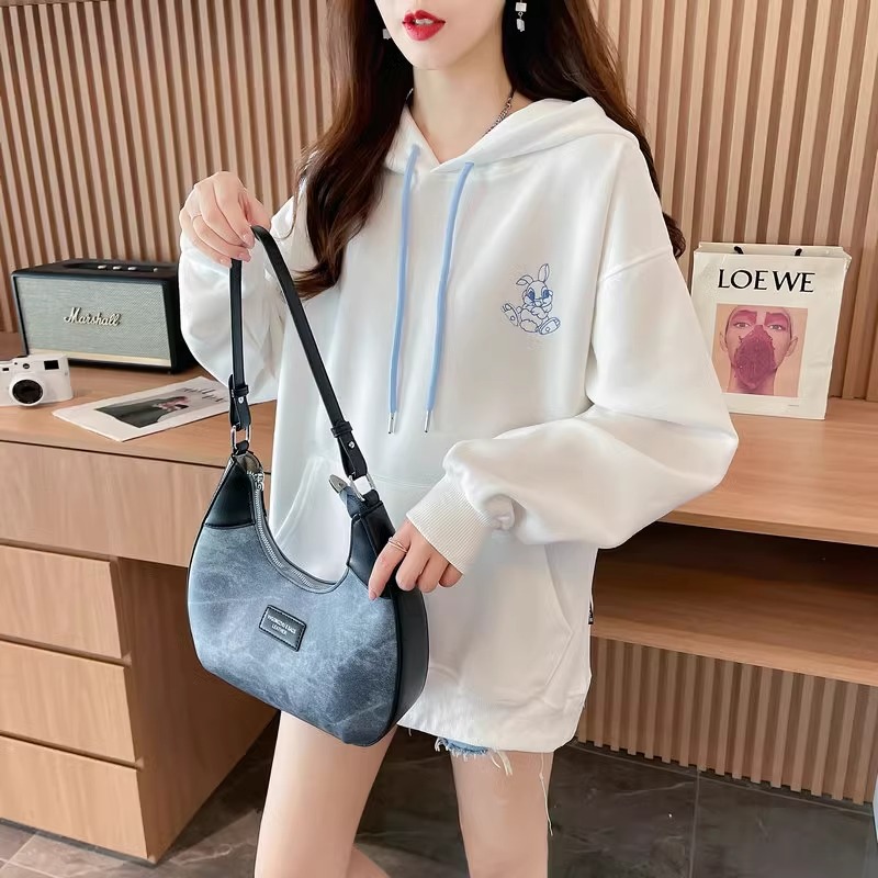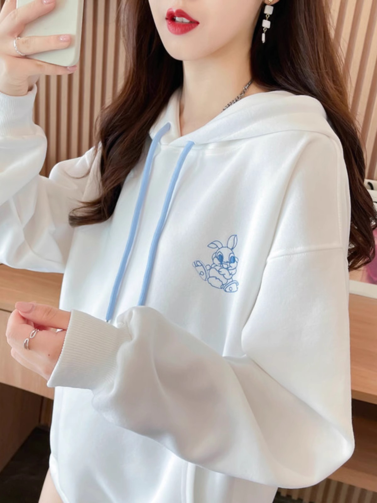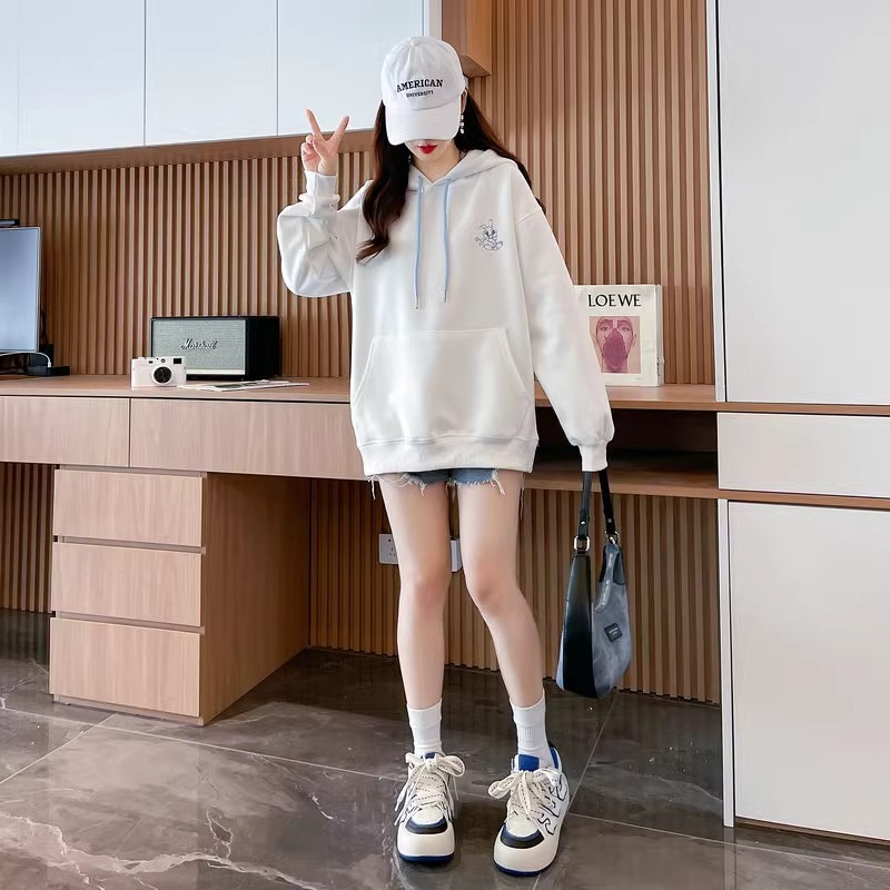 キャラクター刺繍うさぎ帽子パーカーレディース秋冬新作かわいい風デザイン感たっぷりのトップス Tシャツ カットソー