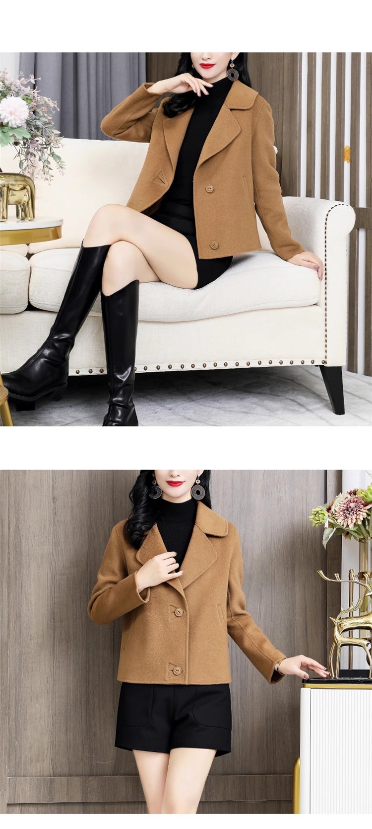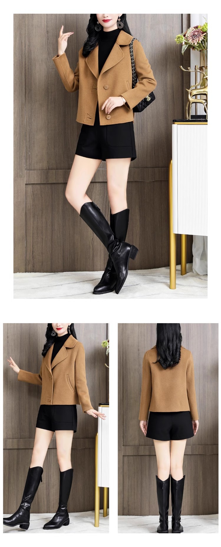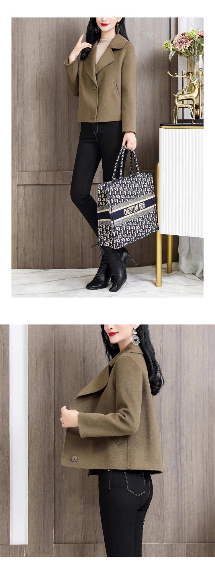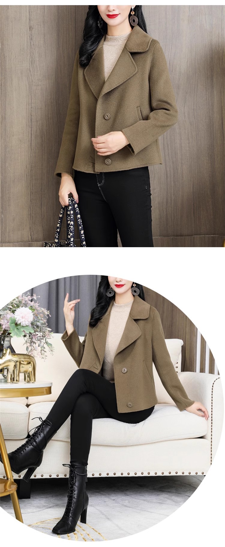 ツイードジャケット 2024 新作 レディースコート 両面ツイードコート ショートセクション トレンチコート