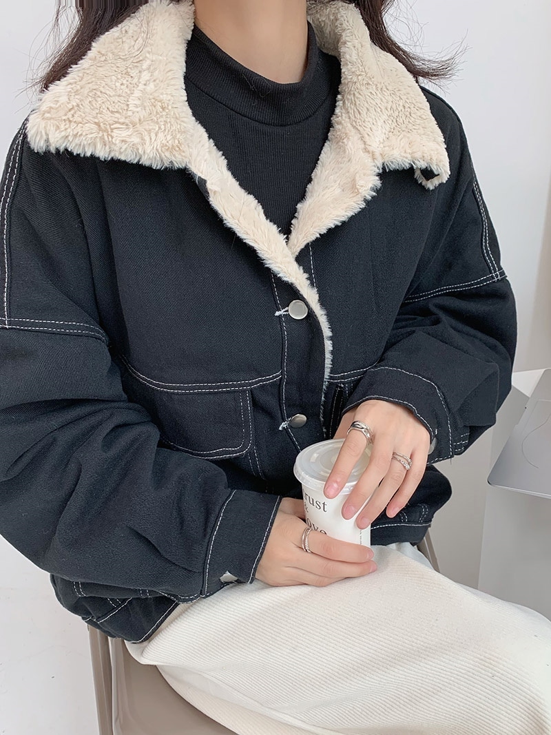 2024新作 秋冬 裏起毛 韓国ファッション ゆったりスウェット ジャケット デニムジャケット 長い ポケット ドロップショルダー ストレート デニムジャケット コート