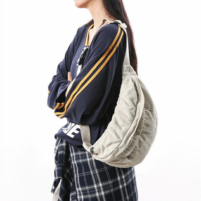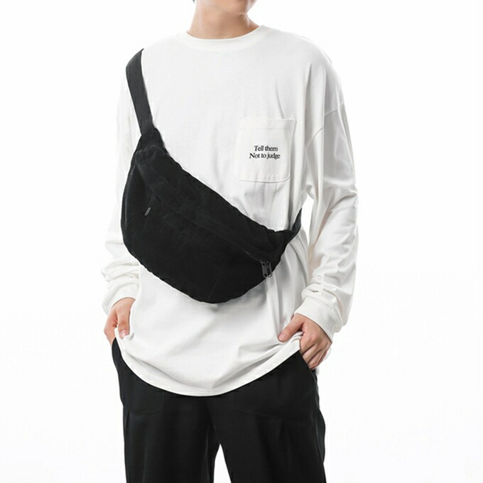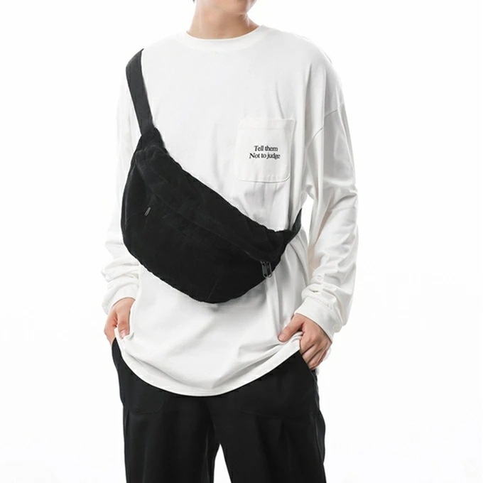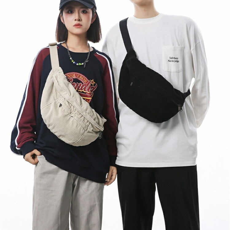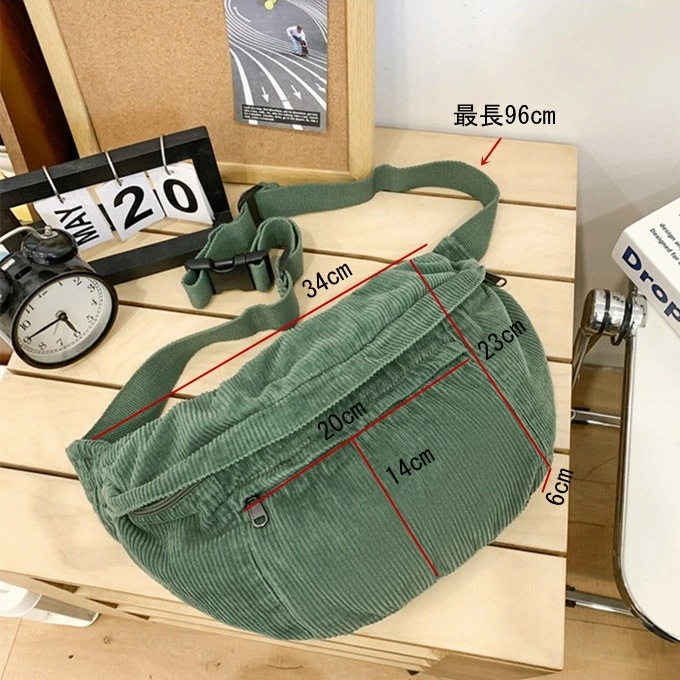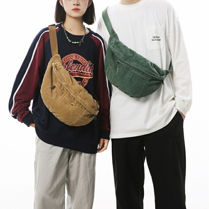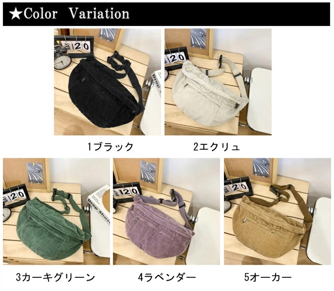 大きめ コーデュロイ メッセンジャーバック サコッシュバッグ リポーターバッグ レディース メンズ 男女兼用 たっぷり収納 外側2ポケット メッシュポケット 斜め掛け ブラック 黒