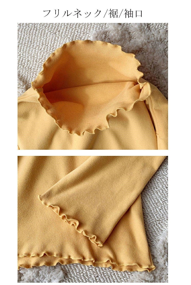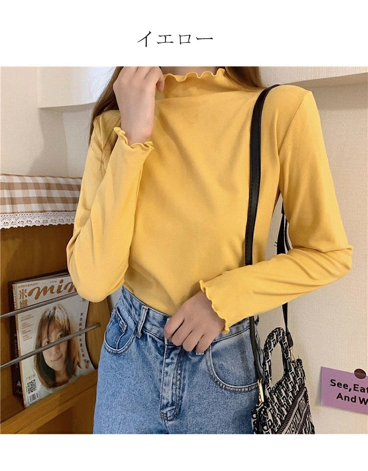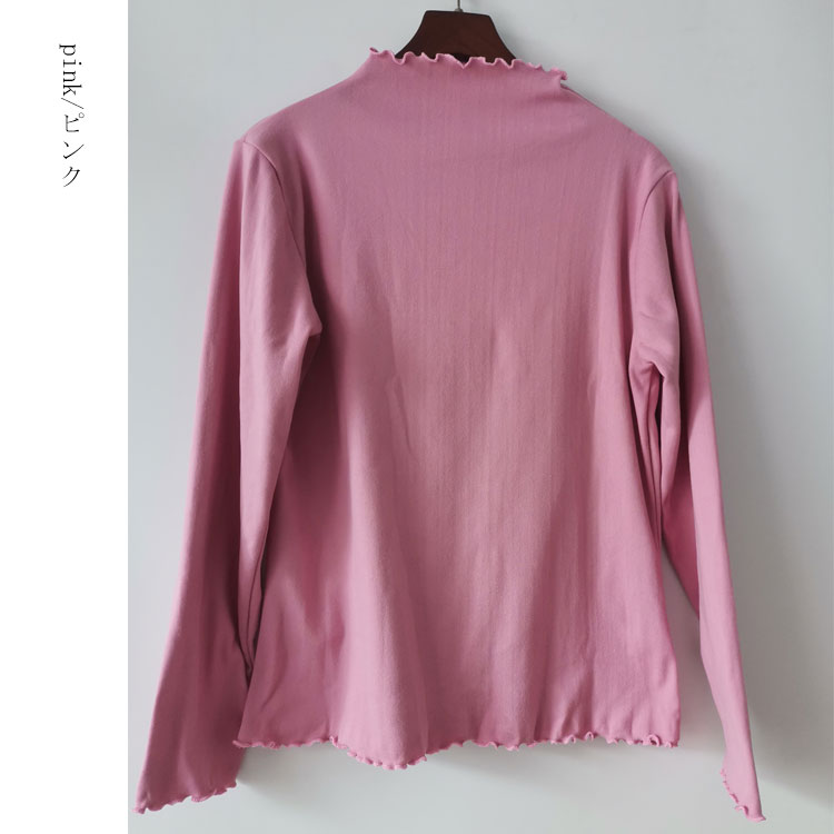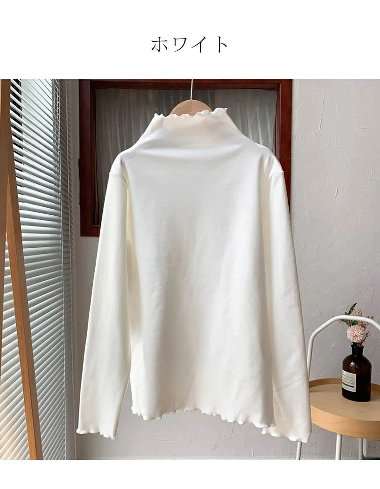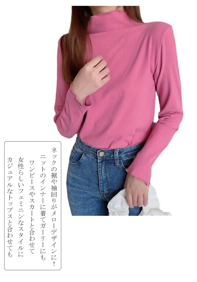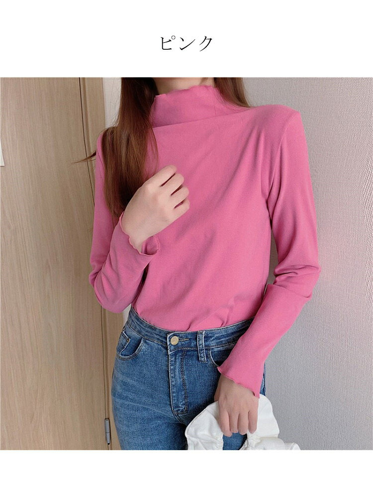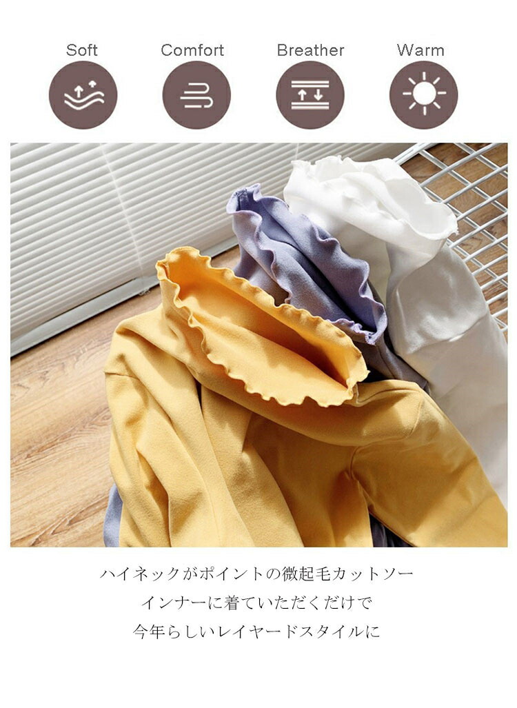 カットソー 秋冬 微起毛 プチハイネック レディース トップス フリル 長袖 ハイネック インナー 春 ストレッチ 伸びる 柔らか コーデ レイヤード きれいめ おしゃれ フリルネック