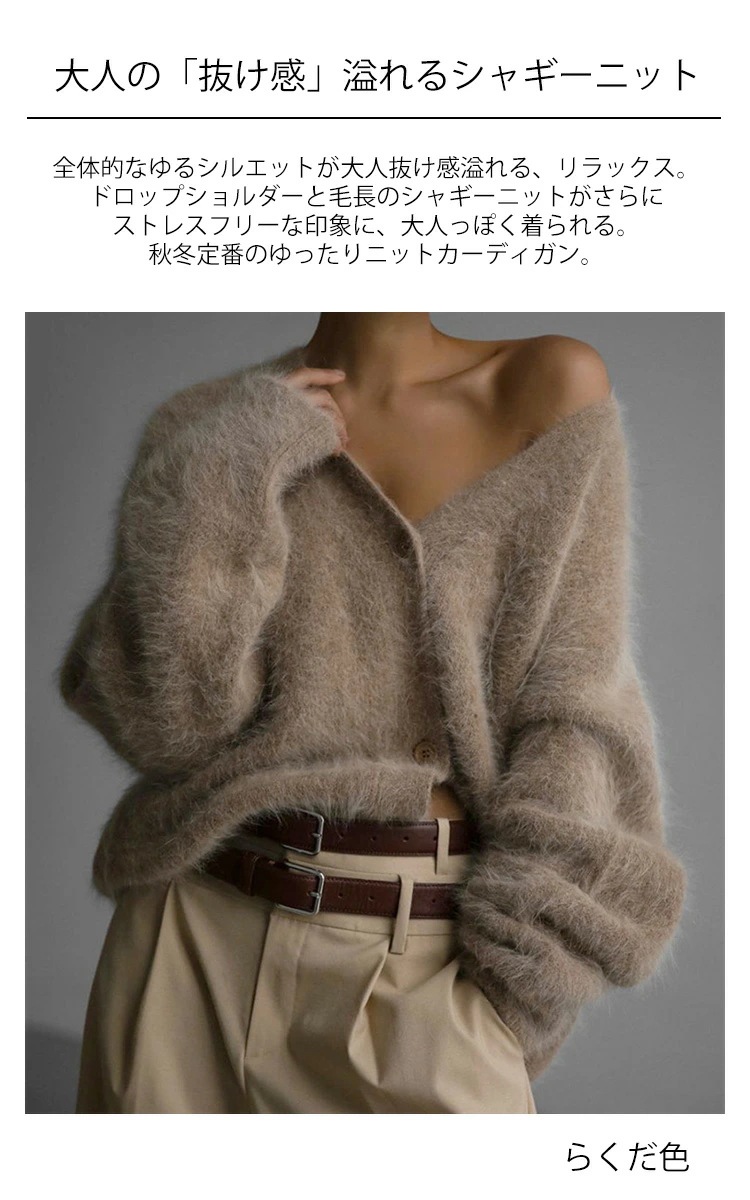 ニットカーディガン シャギーニット レディース カーディガン シャギー ニット 秋 冬 起毛ニット トップス シャギーカーディガン ゆったり 大きいサイズ ボタン ドロップショルダー 羽織り 毛足長い