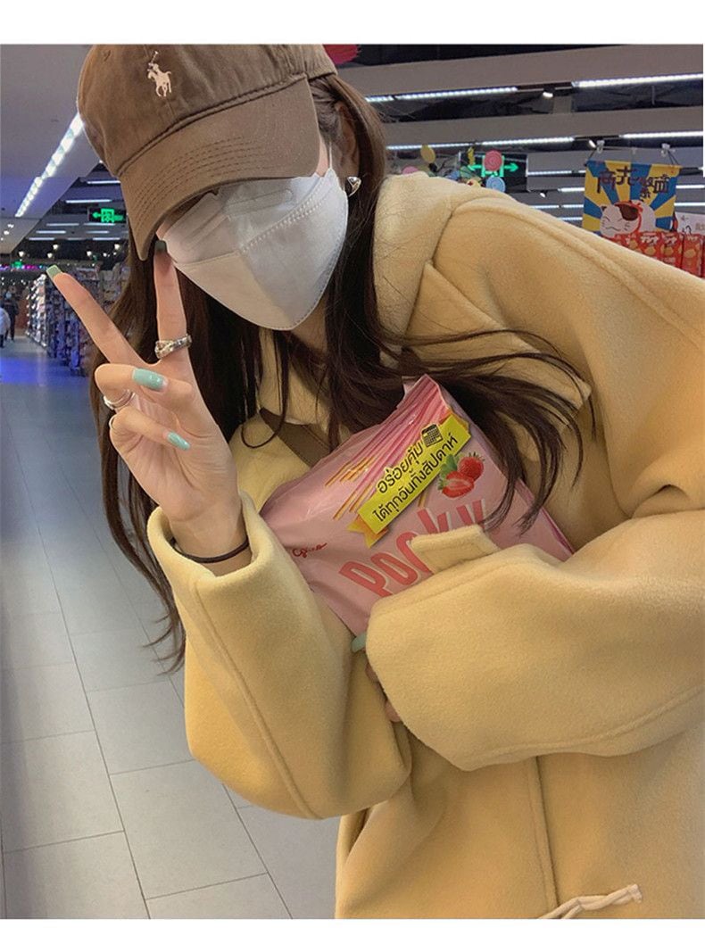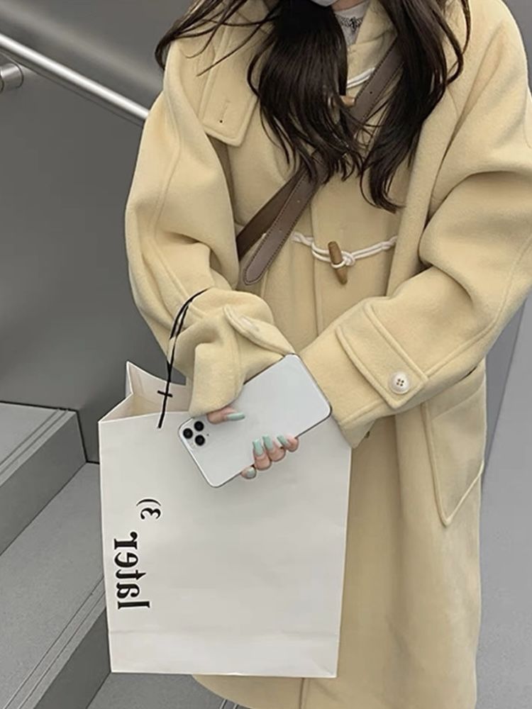大人っぽチェスターコート 韓国系高級ツイードコート秋冬牛角ボタンイエロー小柄コート2024年新作 メガ割 トレンチコート
