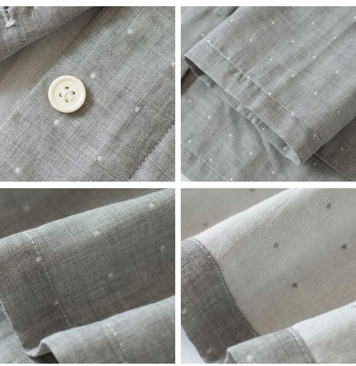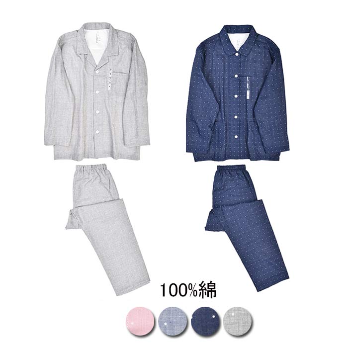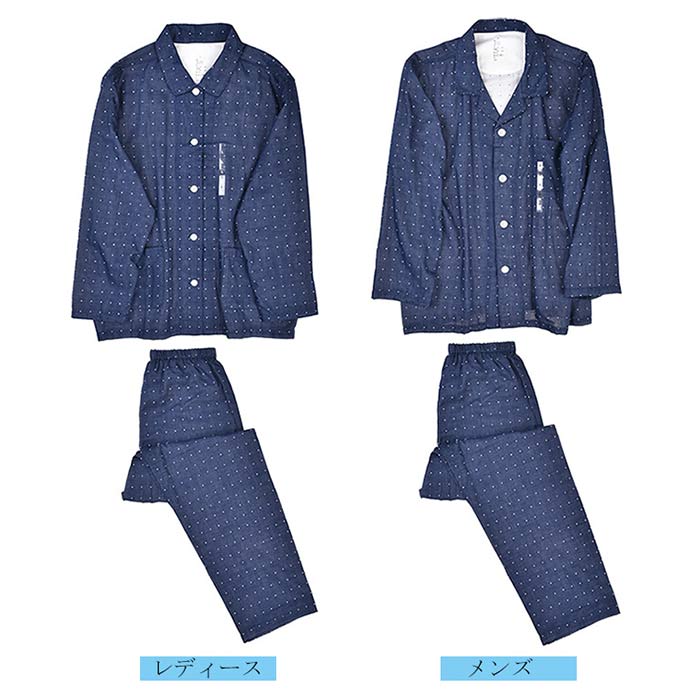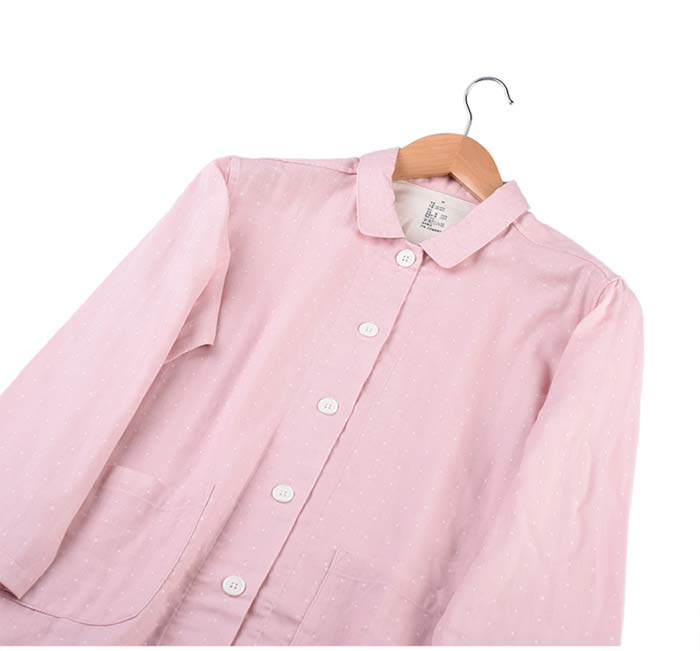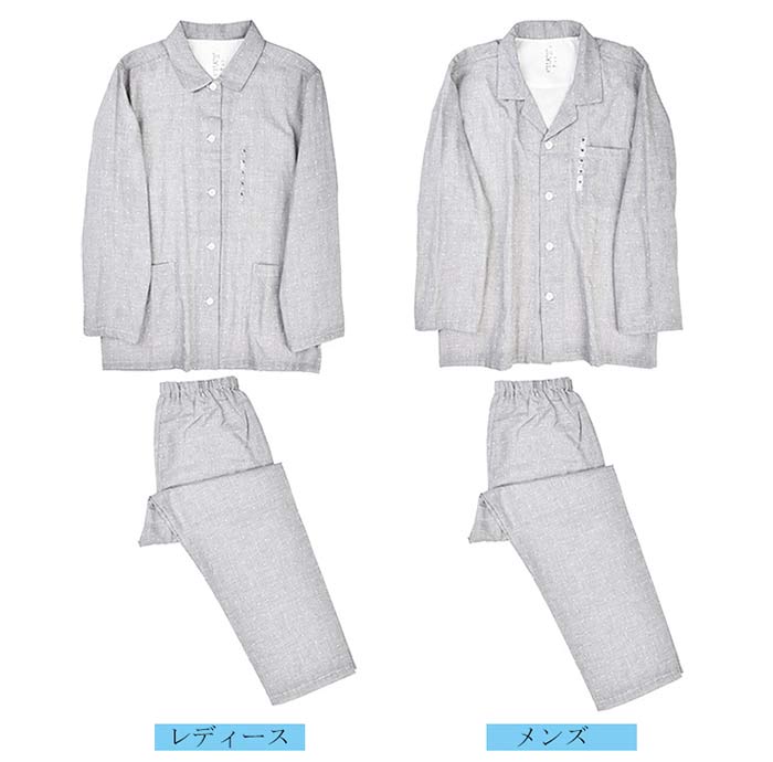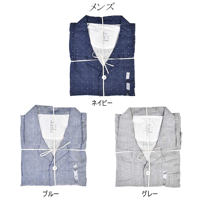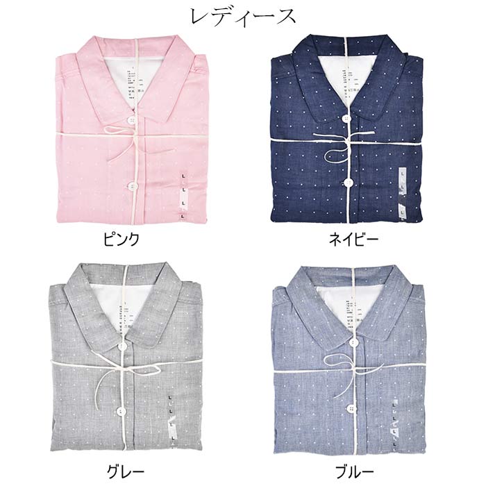 ダブルガーゼ パジャマ ドット柄 綿100% 前開き パジャマ レディース メンズ 長袖 コットン100% 2重ガーゼ ガーゼパジャマ 水玉 春 夏 薄手 ルームウェア 部屋着 寝巻き カップル お揃