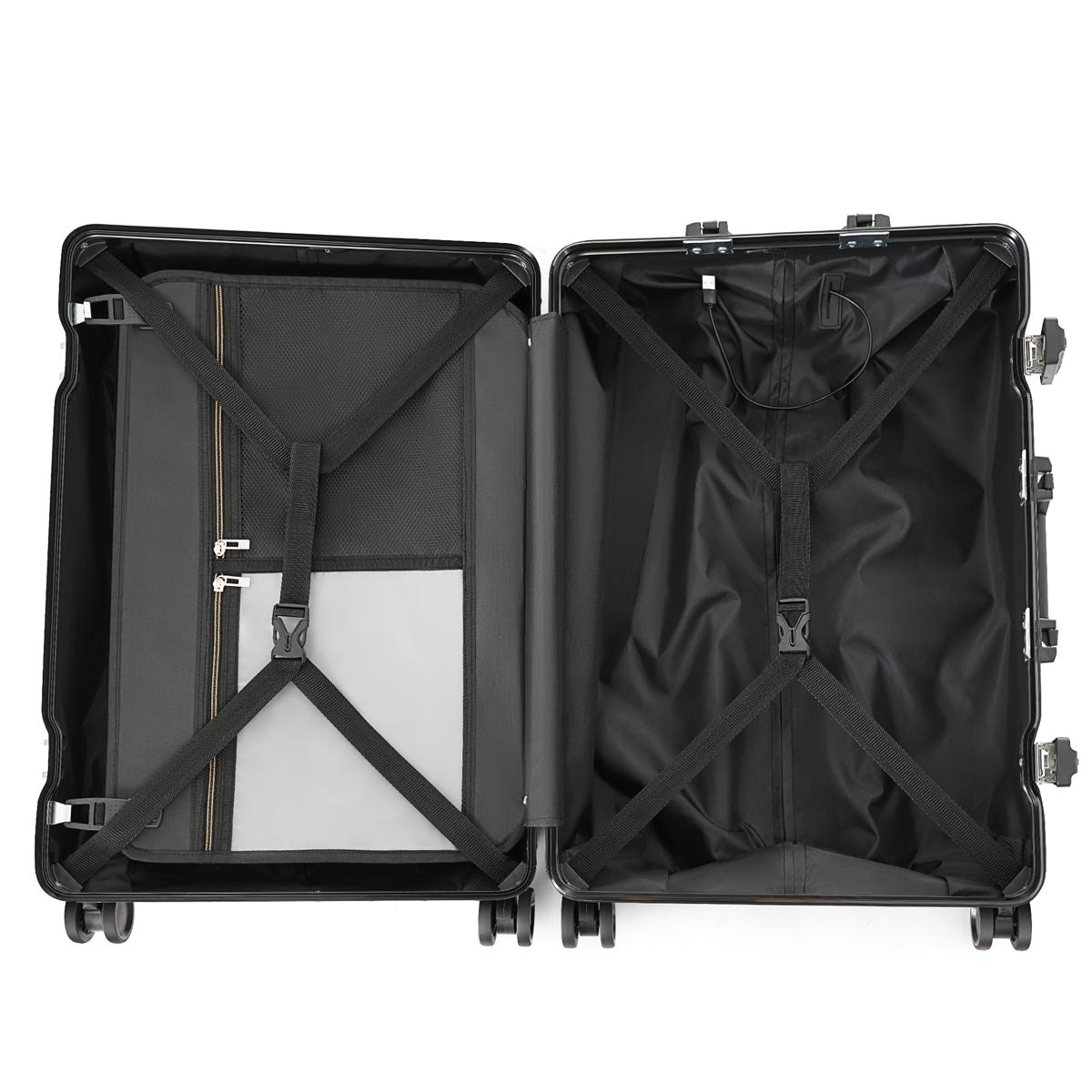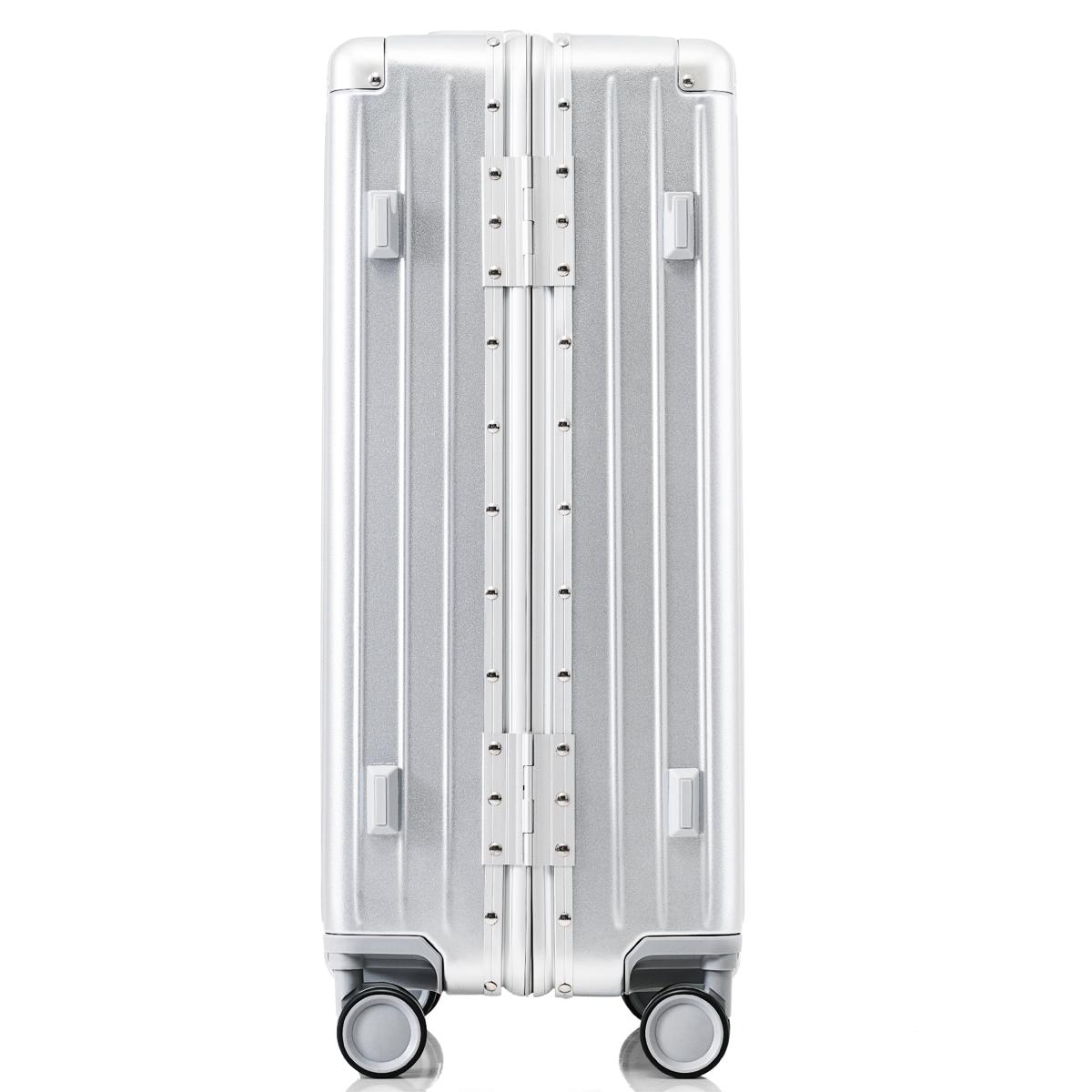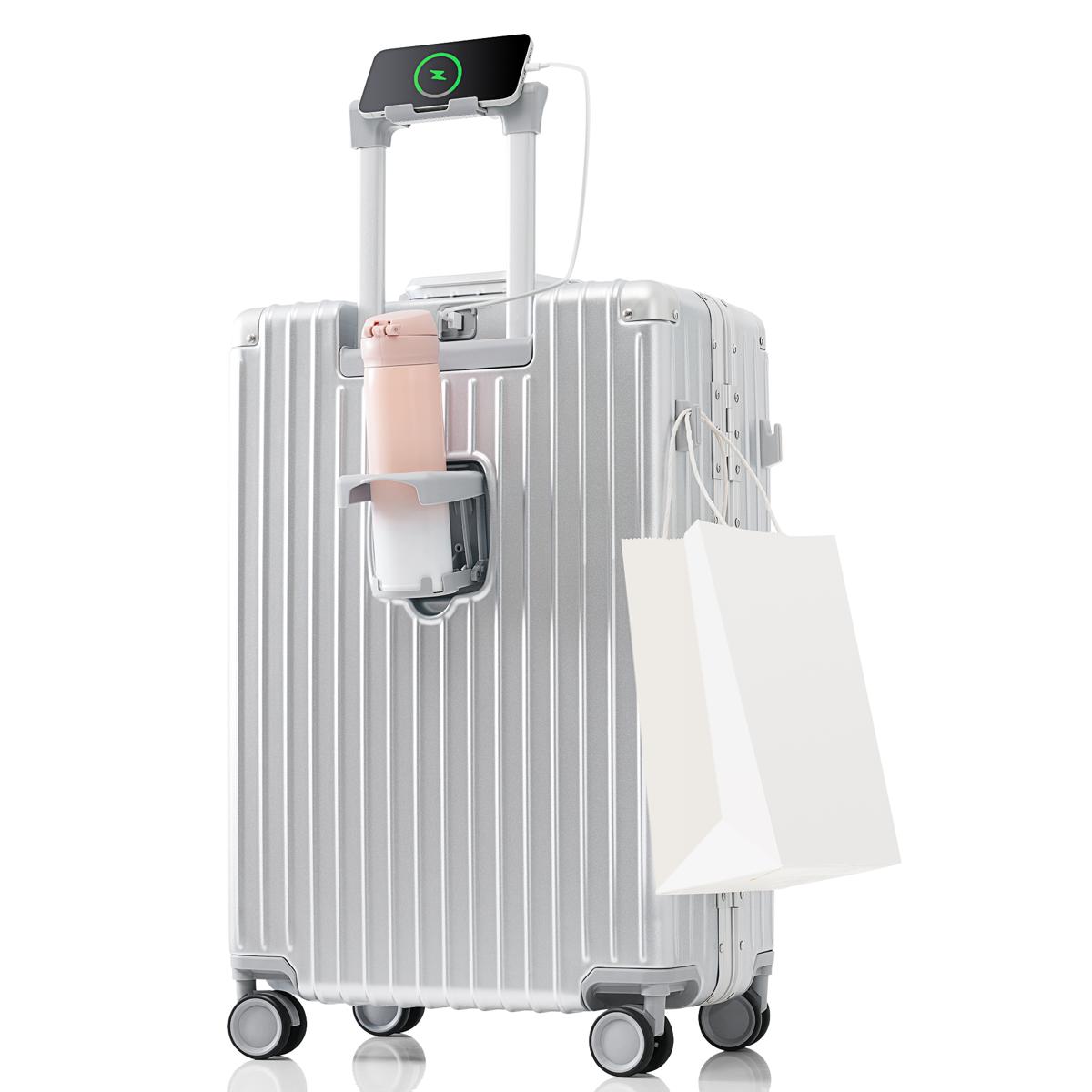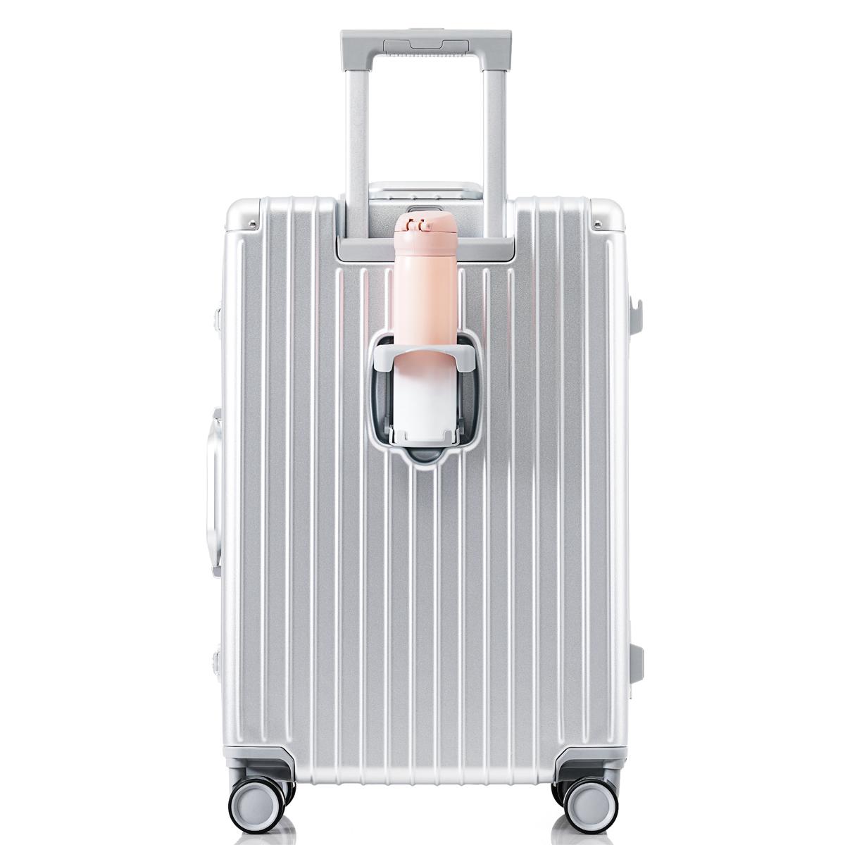 スーツケース Sサイズ 機内持ち込み キャリーケース キャリーバッグ アルミ フレームタイプ USBポート付き スマホスタンド付き 防水ポケット ドリンクホルダー フック式底足 TSAロック おしゃれ 静音 軽量 大容量 China Silver grey