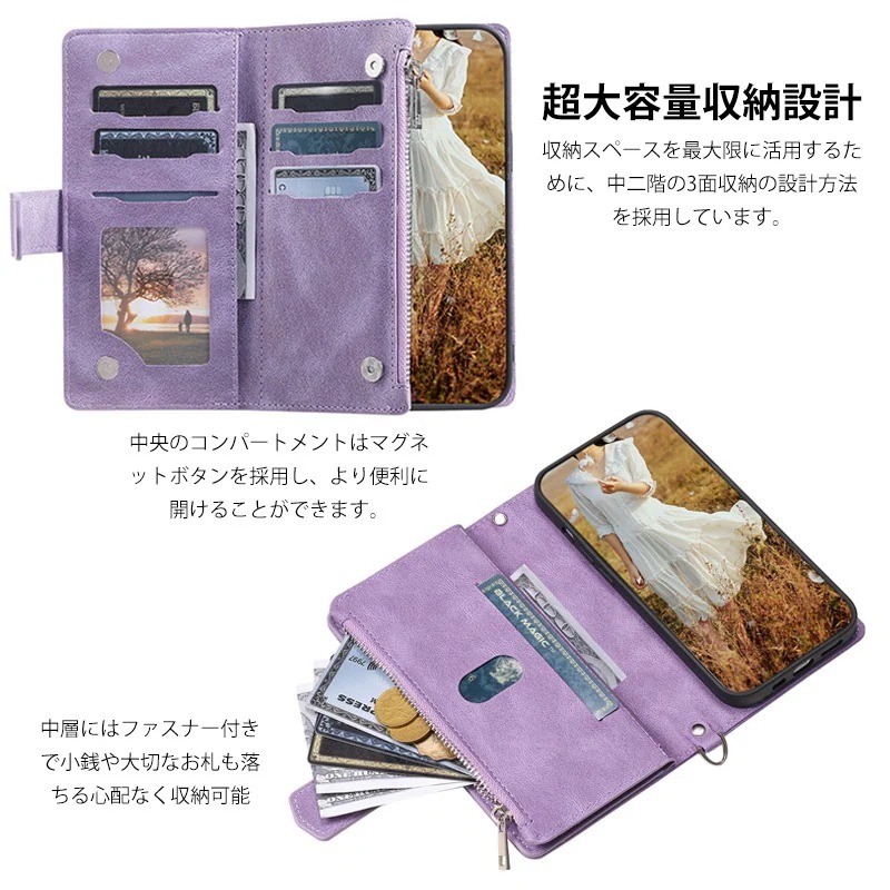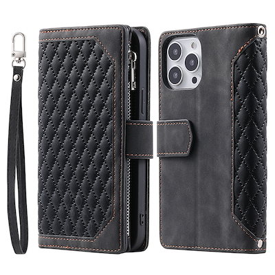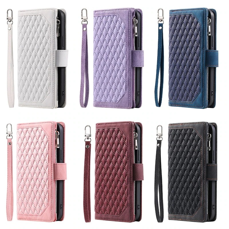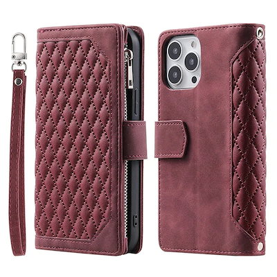 iPhoe 15 14 Plus 13 12 11 Po スマホケース Xs Max 財布 手帳型 格子エンボス加工を施した携帯電話用の二層多機能収納保護ケース 6色