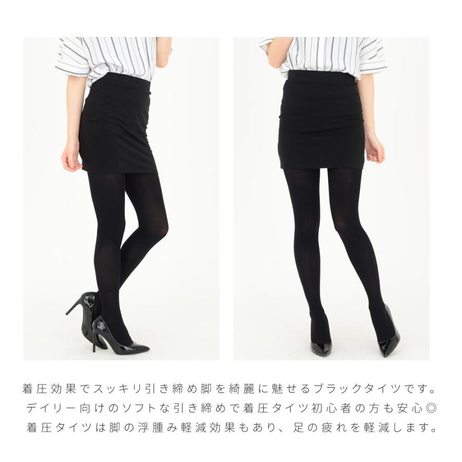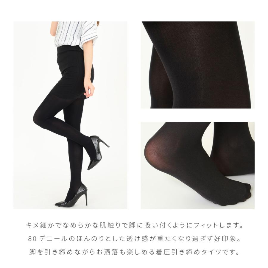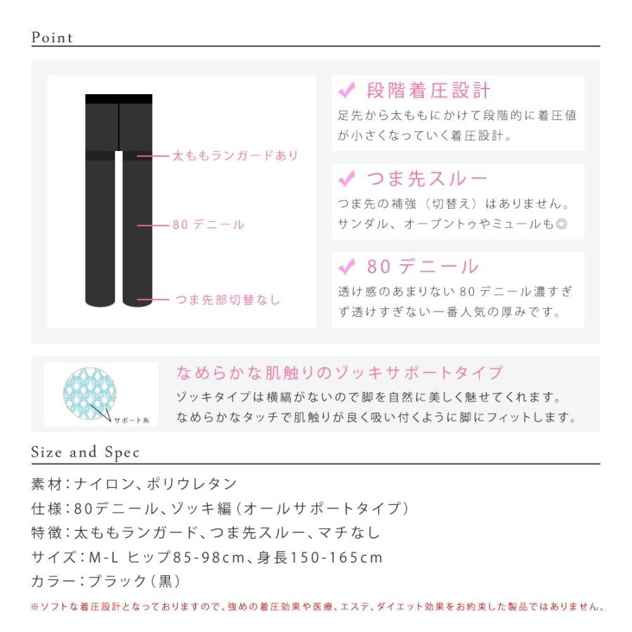 ソフト段階着圧設計 80デニール プレーン ブラック タイツ 抗菌防臭 つま先スルー 無地 黒 靴下 タイツ