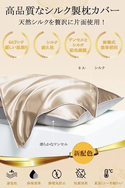 100%シルク 枕カバー まくらカバー 片面シルク 22匁25匁 封筒式シルクピローケース寝癖軽減 枕