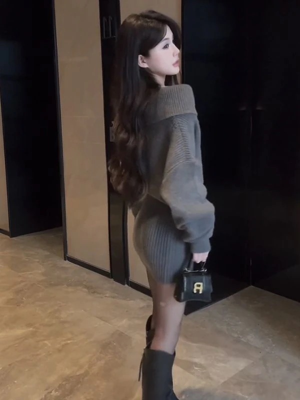 ニットワンピース セーター トップス ニットトップス レディースファッション 秋と冬2024新しいファッションセーターのドレス ドレス ヒップスカート タートルネックワンピース ワン