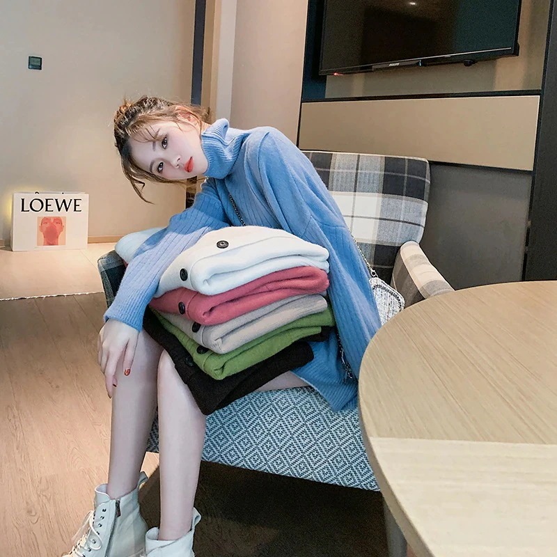 韓国ファッション ベーシックニット 長袖 タートルネック ニットレディース 着痩せ ハイネック インナー トップス ゆったりスウェット ニット セーター