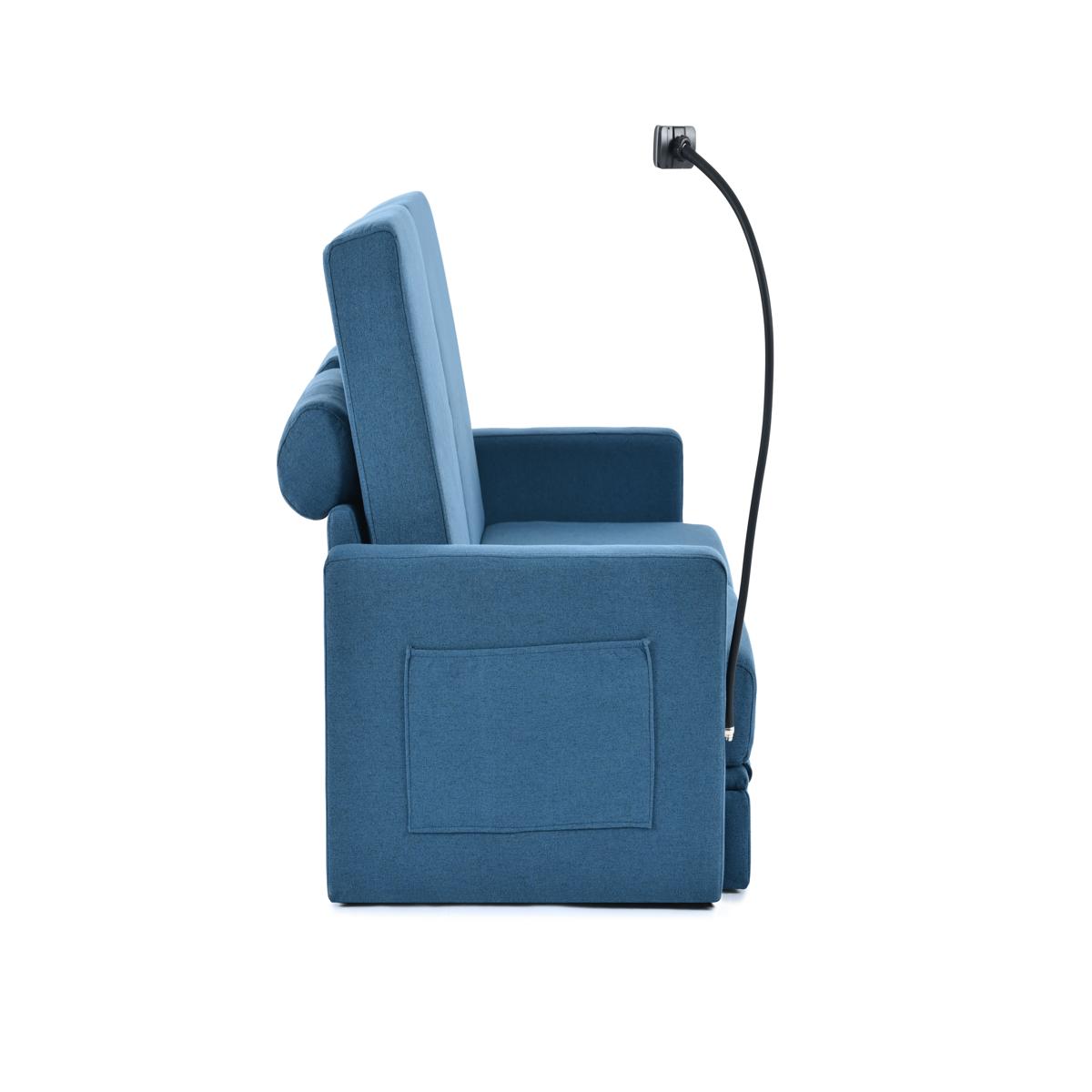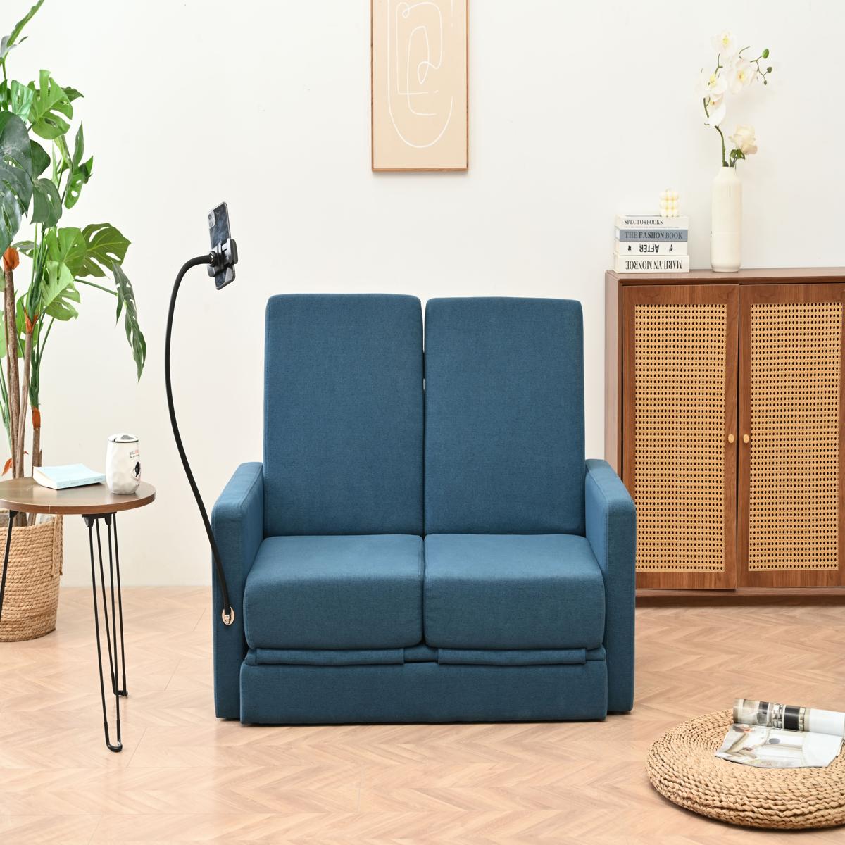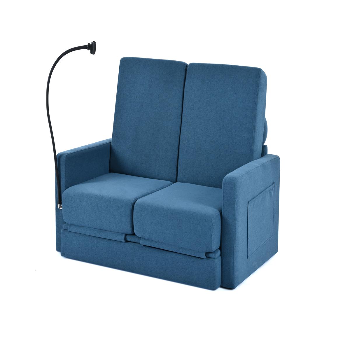 リビングルームのための調節可能な背もたれ付き収納、プルアウトベッド付きラブシートスリーパーソファ China Blue