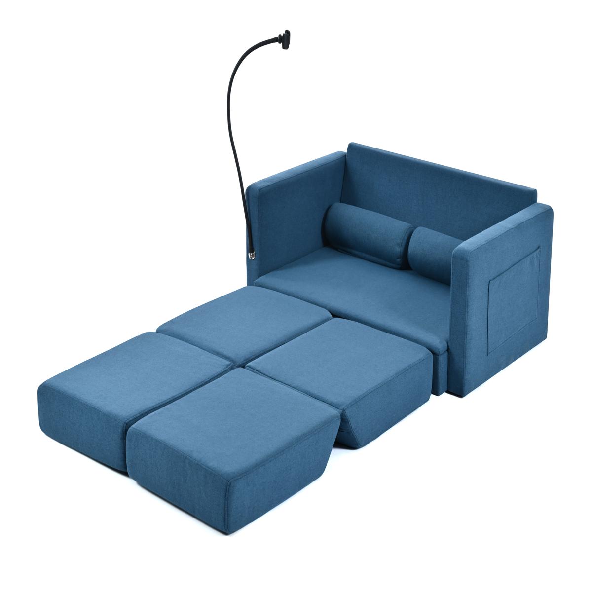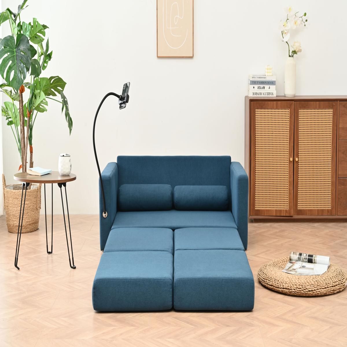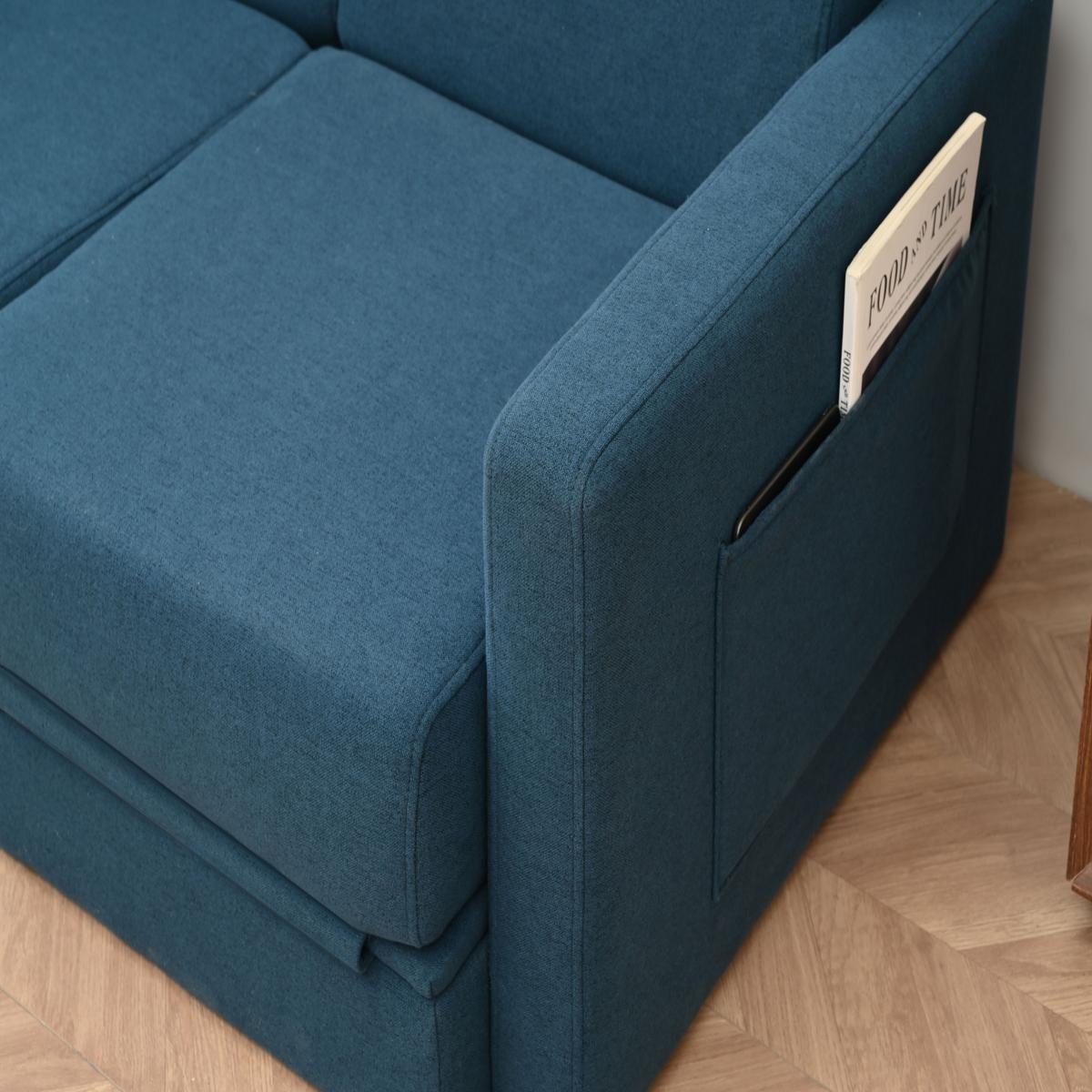 リビングルームのための調節可能な背もたれ付き収納、プルアウトベッド付きラブシートスリーパーソファ China Blue