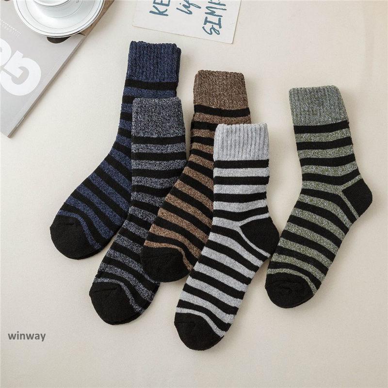 靴下 ソックス メンズ 5足セット 暖かい クルーソックス 秋冬 ルームソックス スポーツ ストライプ 男性 抗菌防臭 靴下