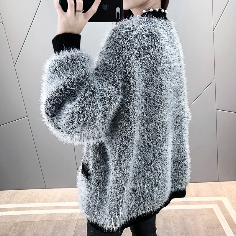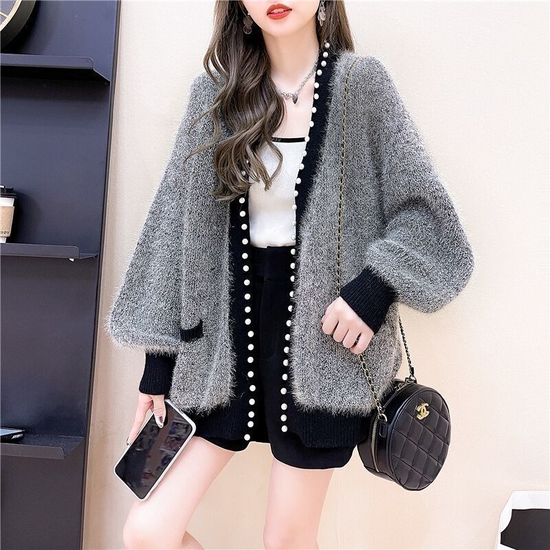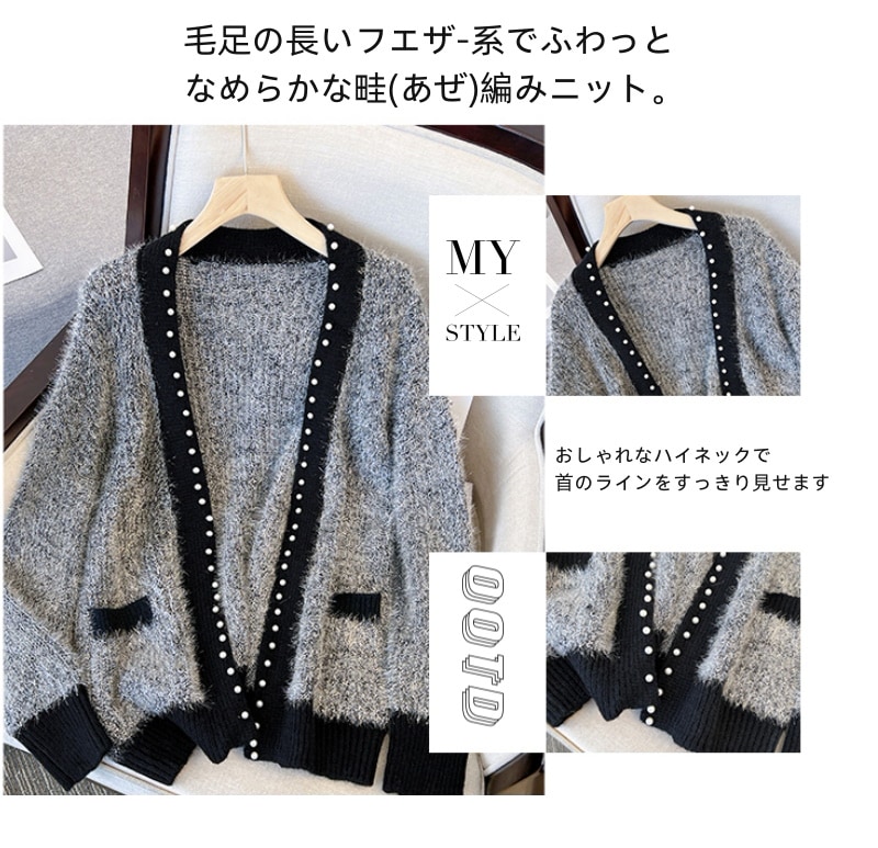 レディースファッション アウター 秋 冬 ジャケット フェザーヤーン 長袖 ニット カーディガン 体型カバー ボリューム感 保温性 トレンド感 初セーター コート