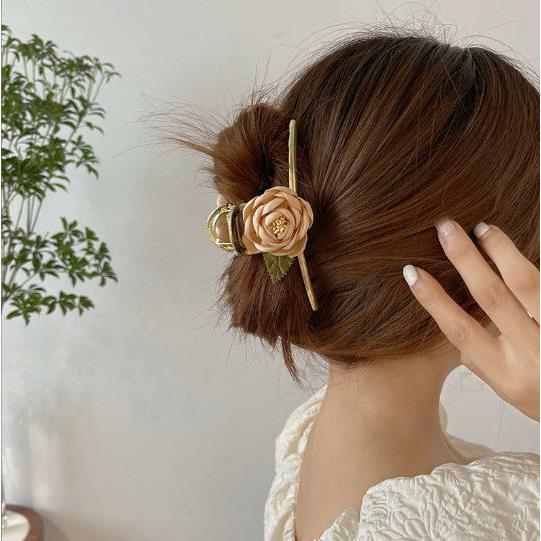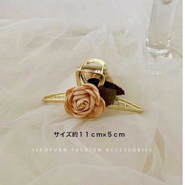 ヘアクリップローズチャームゴールドメタルバンスクリップおとなかわいいパーティ結婚式30代40代50代プレゼント丈夫 ヘアクリップ