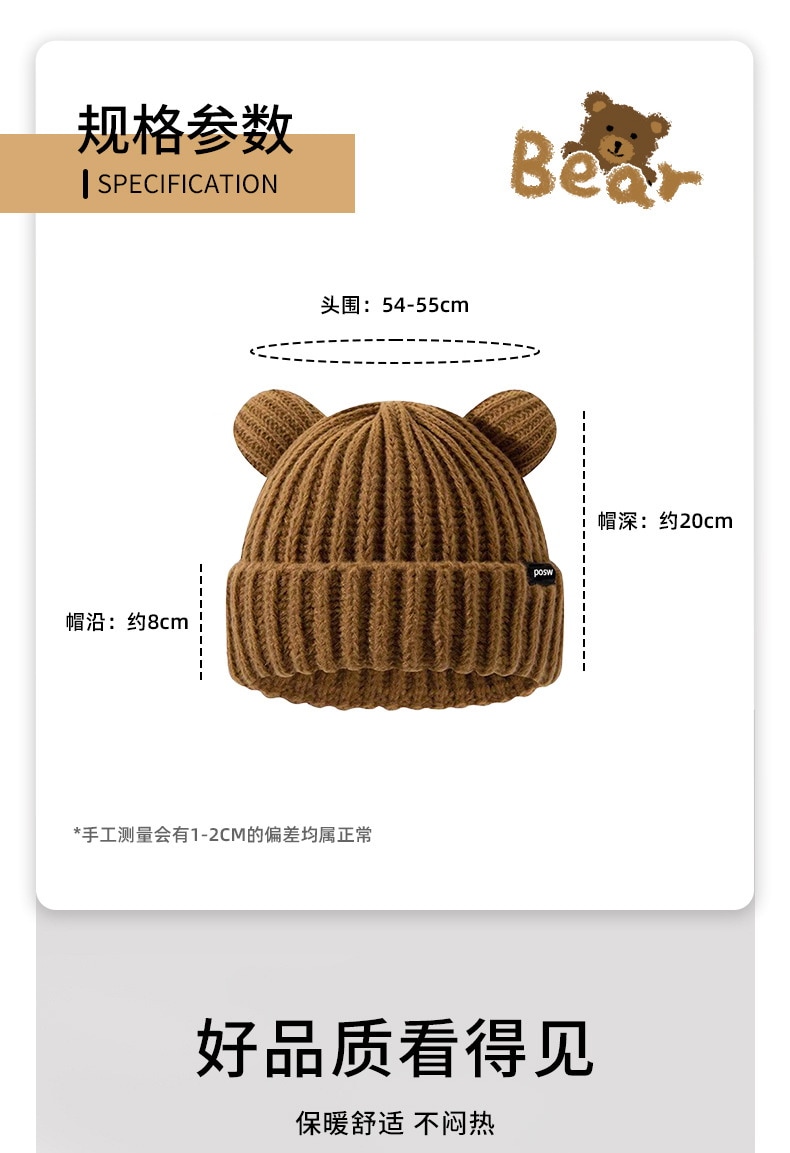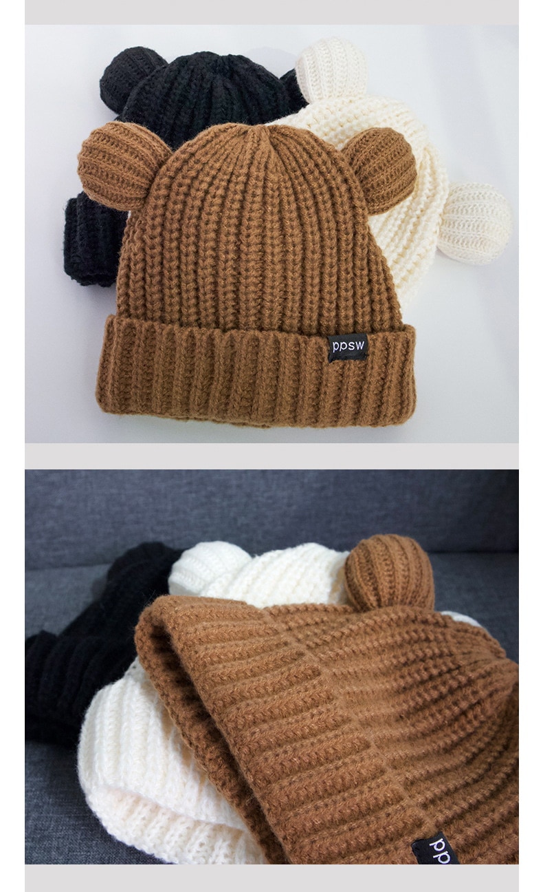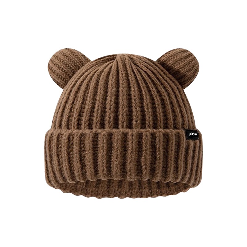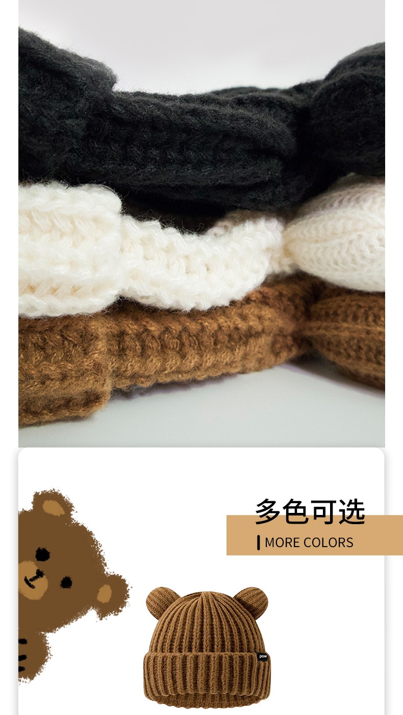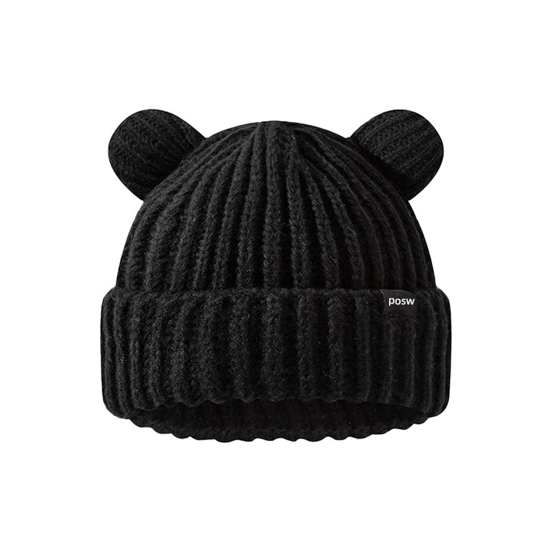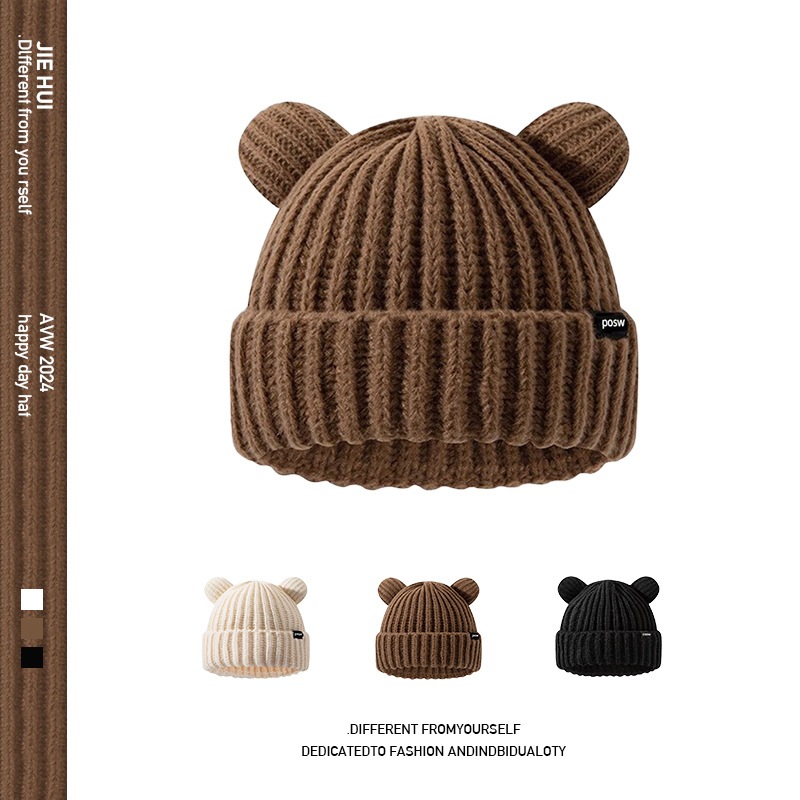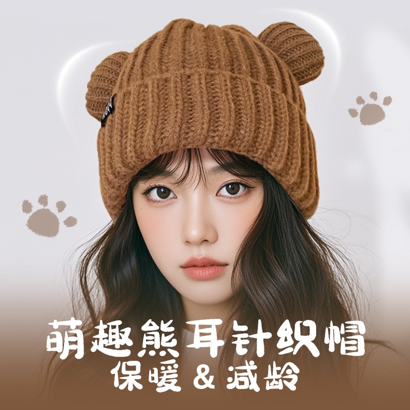 2024新型かわいいクマのニット帽秋冬暖かく顔が小さく見えるニット帽子女性冬防寒 ニット帽