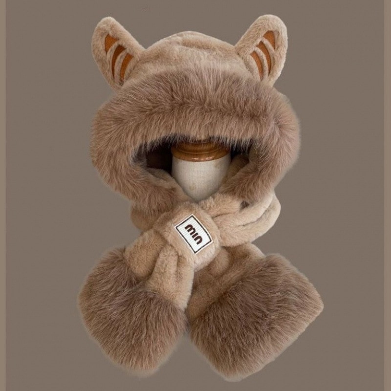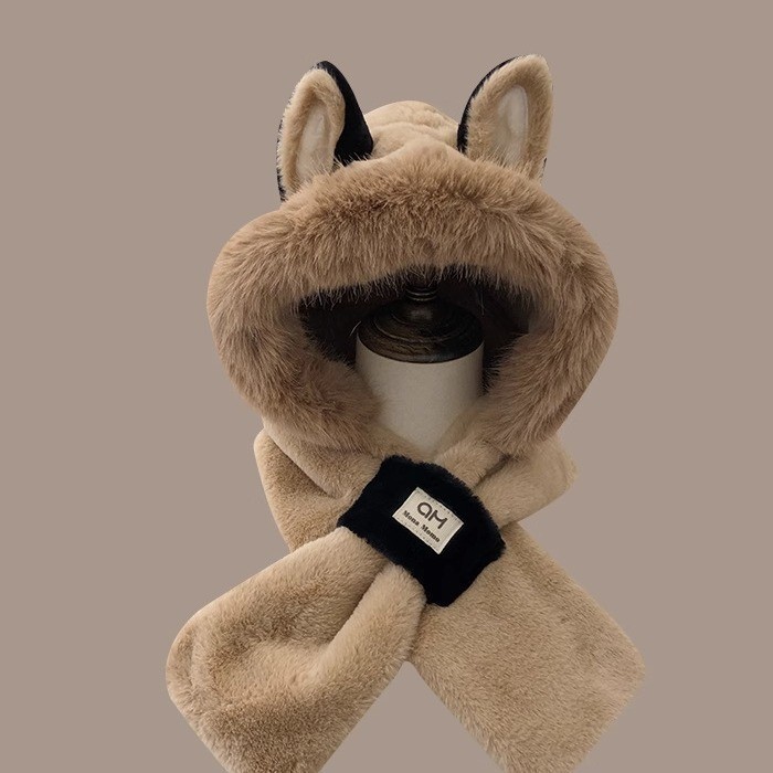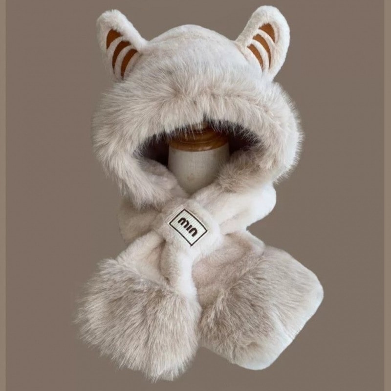 トラの耳帽子マフラー一体帽子女性冬の韓国版かわいいモケット保温耳巻きネック雷鋒帽 ニット帽
