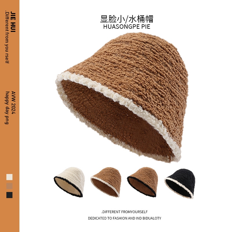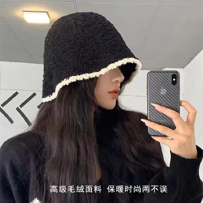 子羊巻き綴じ色鉢帽女性らしさ上品高級感スタンド帽モチモチ保温漁師帽 ニット帽
