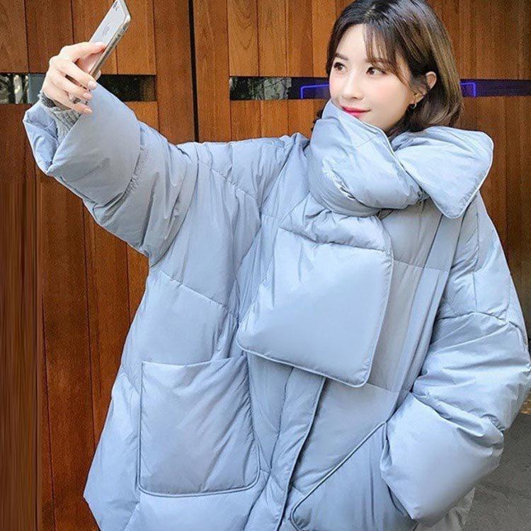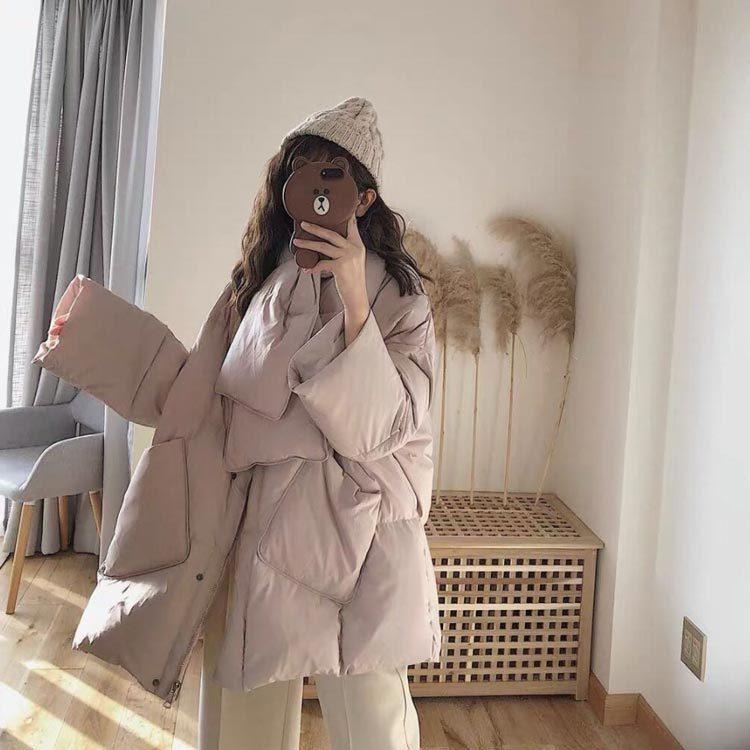 品物を厳選するダウンコートマフラー付きダウンジャケットレディースミドル丈ロングコートロングジャケットノーカラー秋冬あったか暖かいアウター長袖