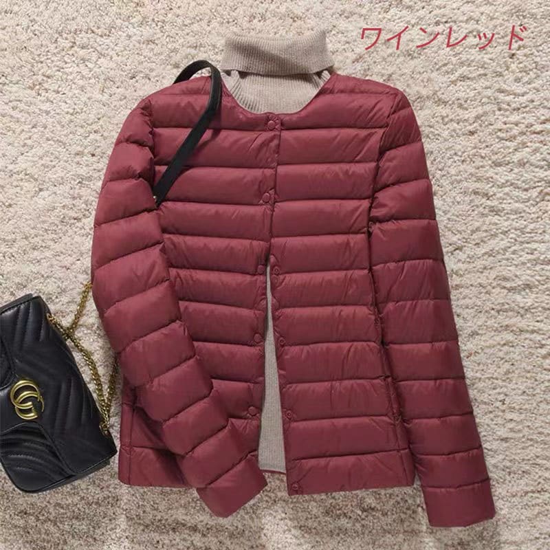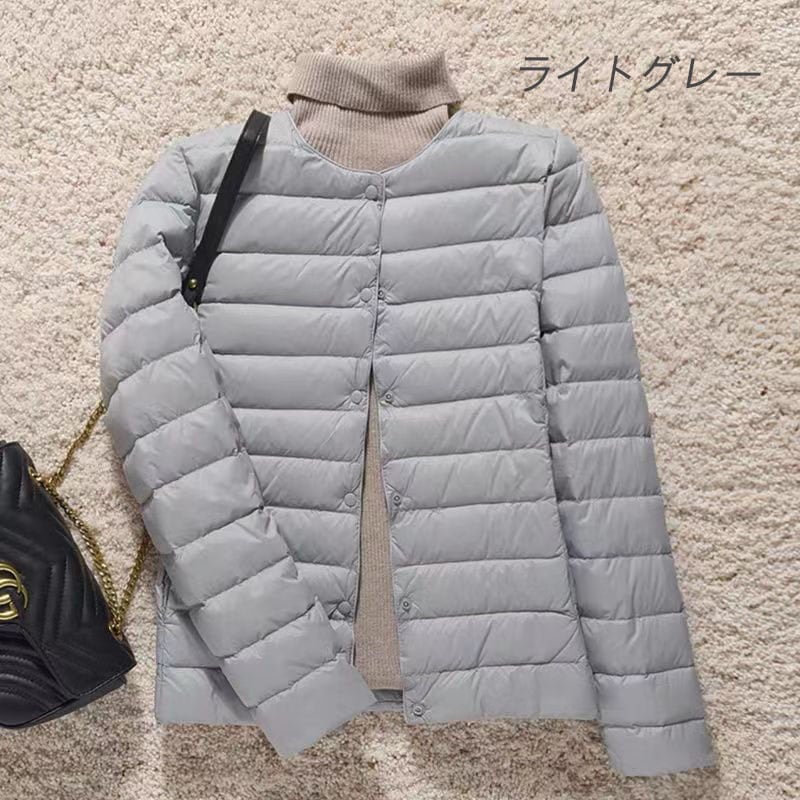 ダウンジャケット レディース ダウン 軽量 ノーカラー コート アウター 冬 暖かい 防寒服 ダウンジャケット コート