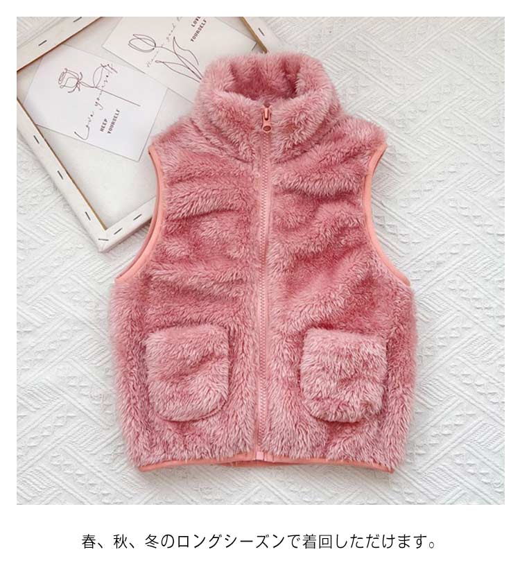 キッズベストフリースベスト子モコモコフリースボアジャケットアウタースタンドカラー子服女の子ボアフリース男の子秋冬ふわふわボアベスト ベスト