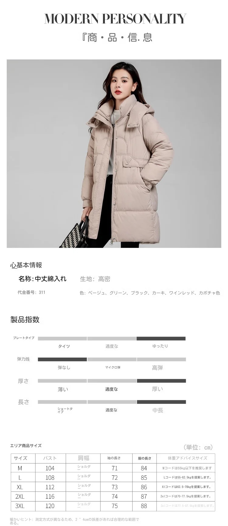 2024冬新作 ダウンコート 中綿コート 軽量 ダウン綿服女性の中長タイプの韓国版ゆるい綿服冬に保温 コート 韓国ファッション 防寒 防風 コート ダウン レディース服 通学 通勤