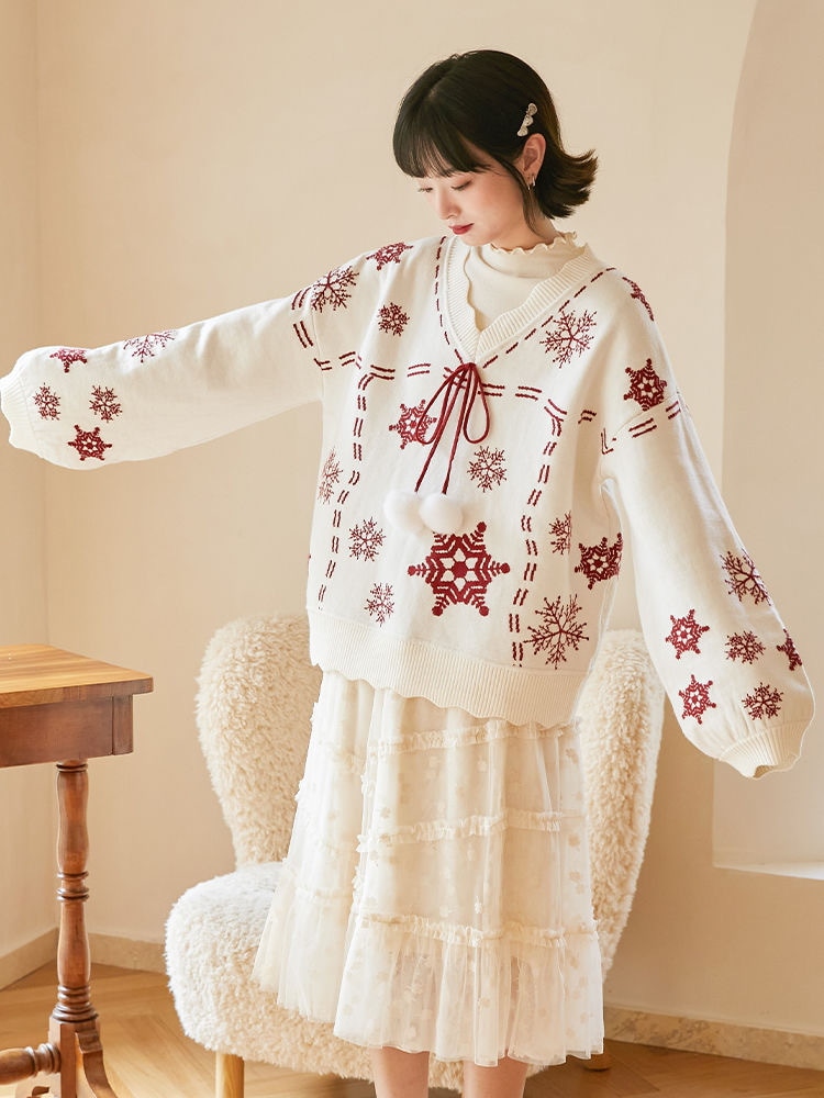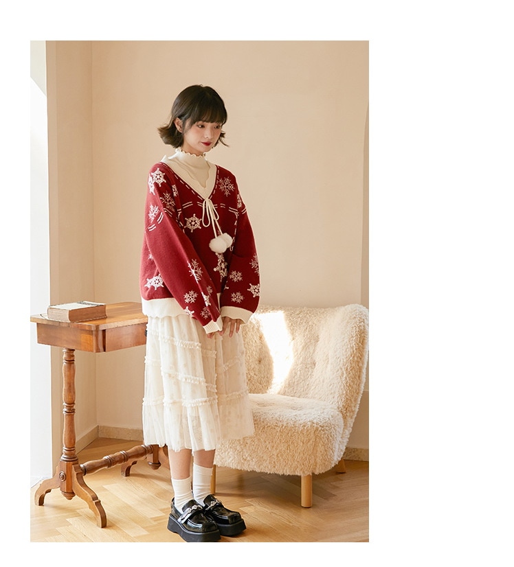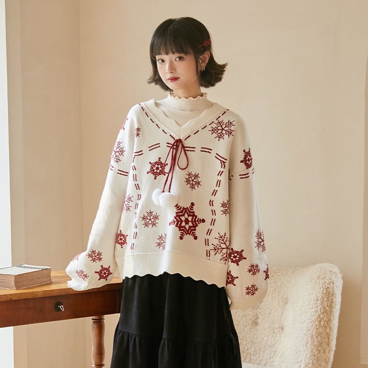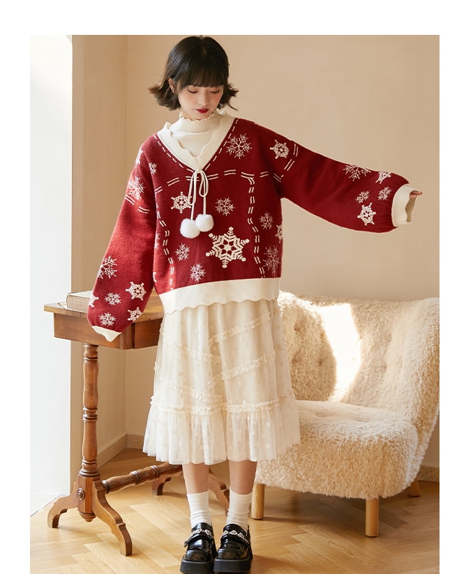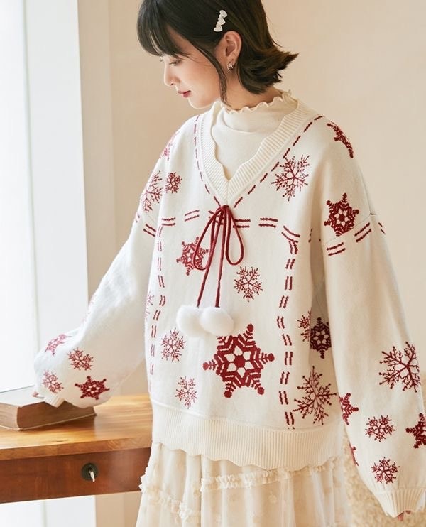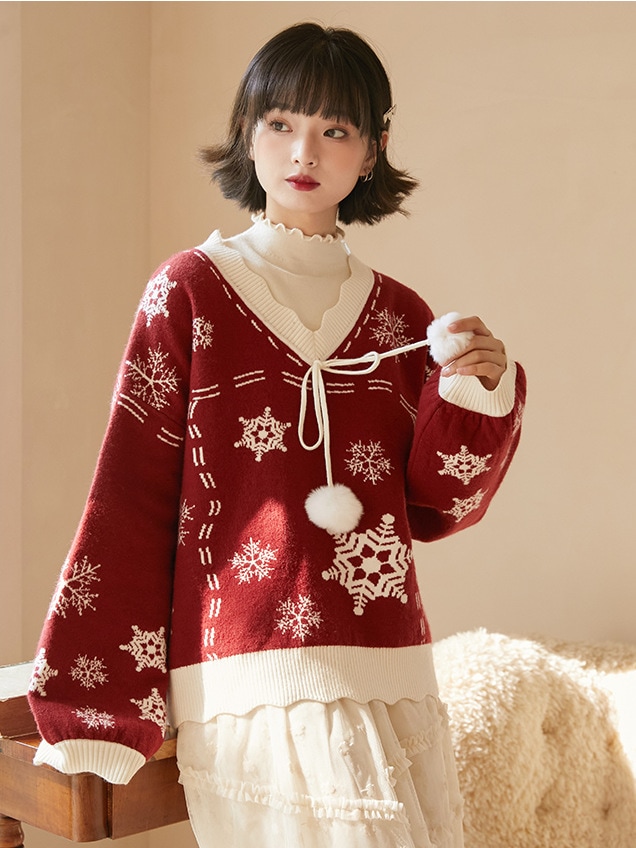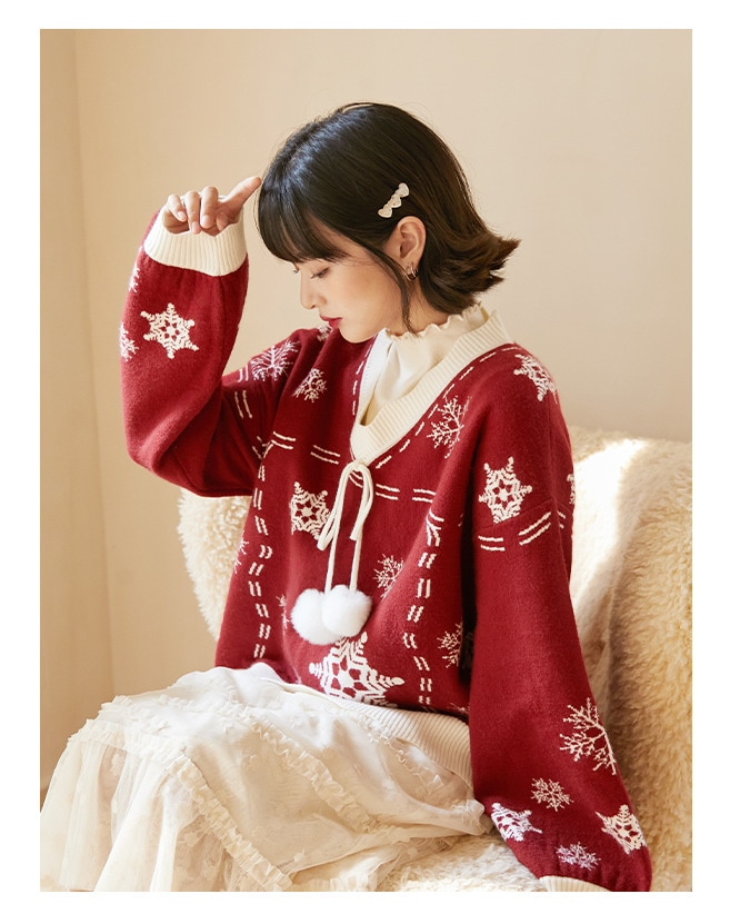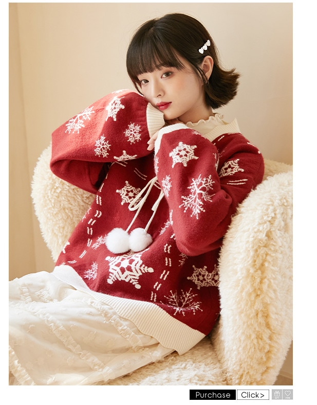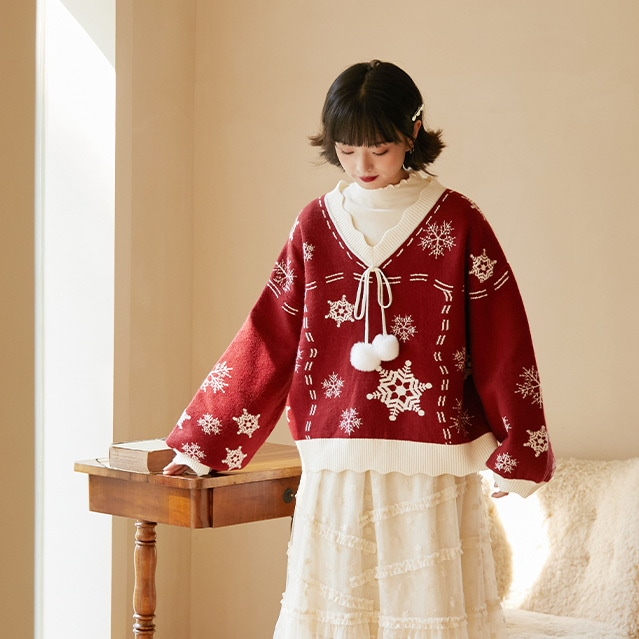 2024韓国の人気 秋冬クリスマス パーカー セーター 赤い ニットは雪花ジャカードを着て甘い上着を着て クリスマスコスチューム ファッション 百に乗る かわいい 防寒 レディースニット
