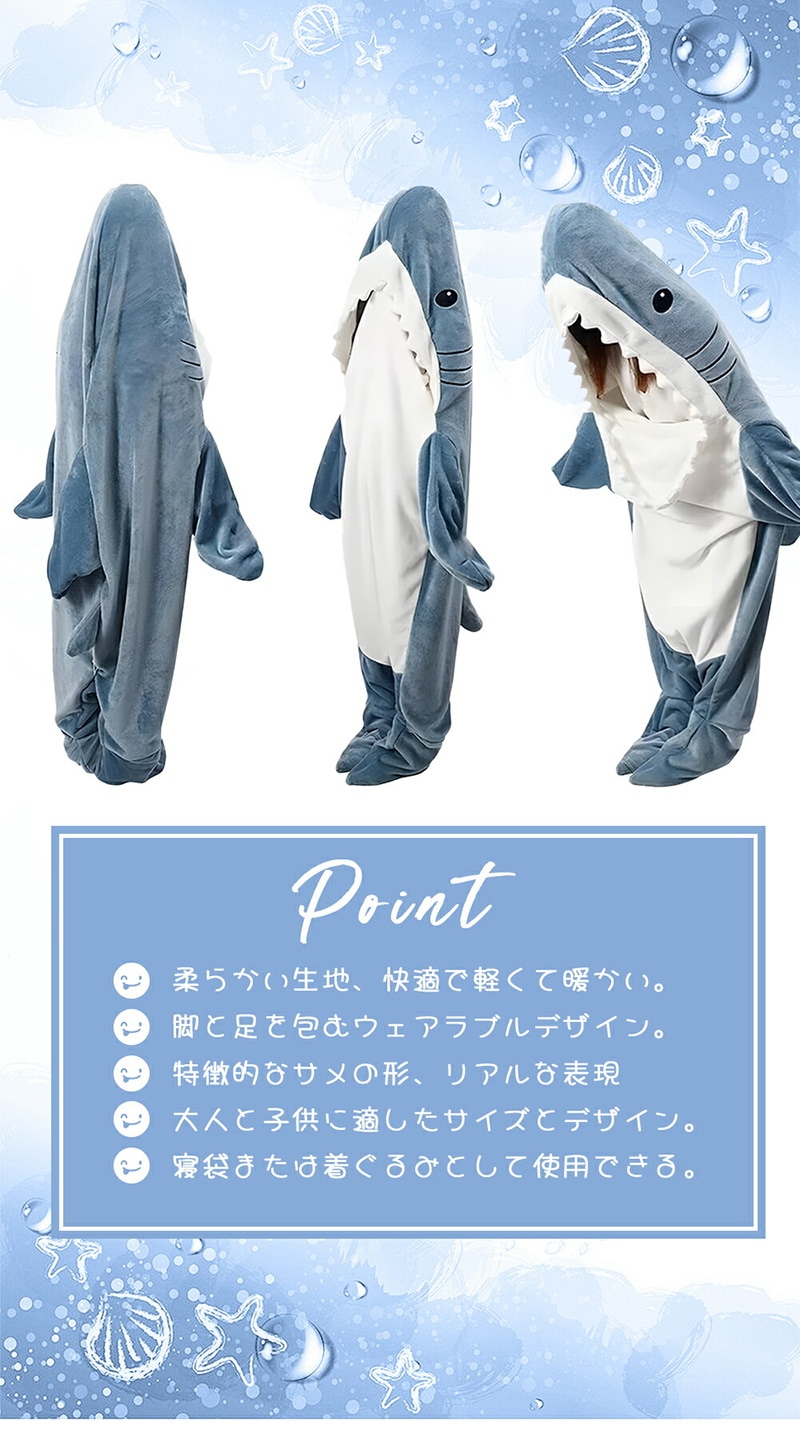 SNSで大人気 サメ寝袋 サメ 着る毛布着ぐるみパジャマ ハロウィンコスプレ 大人用 子ども用 かわいい ふわふわ パジャマ ルームウェア 寝袋 暖かい 柔らかい 防寒
