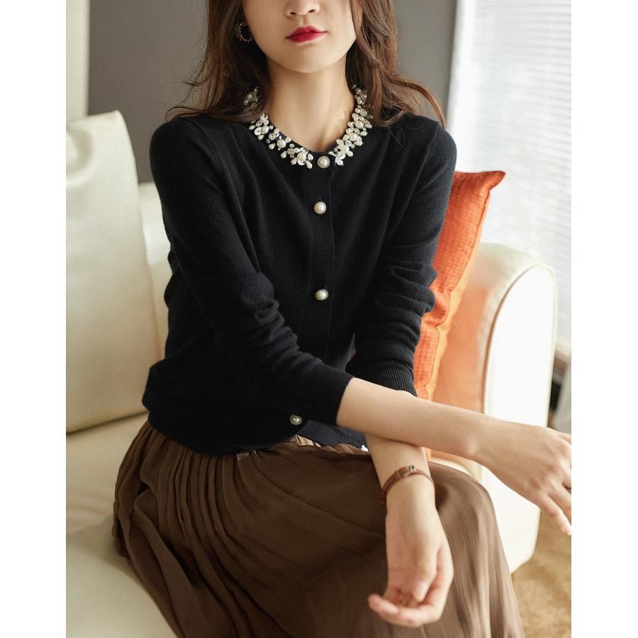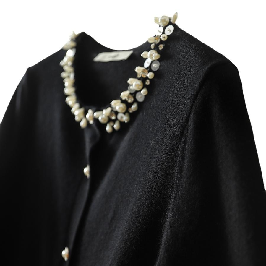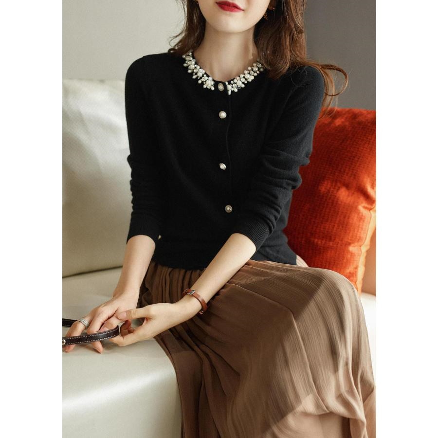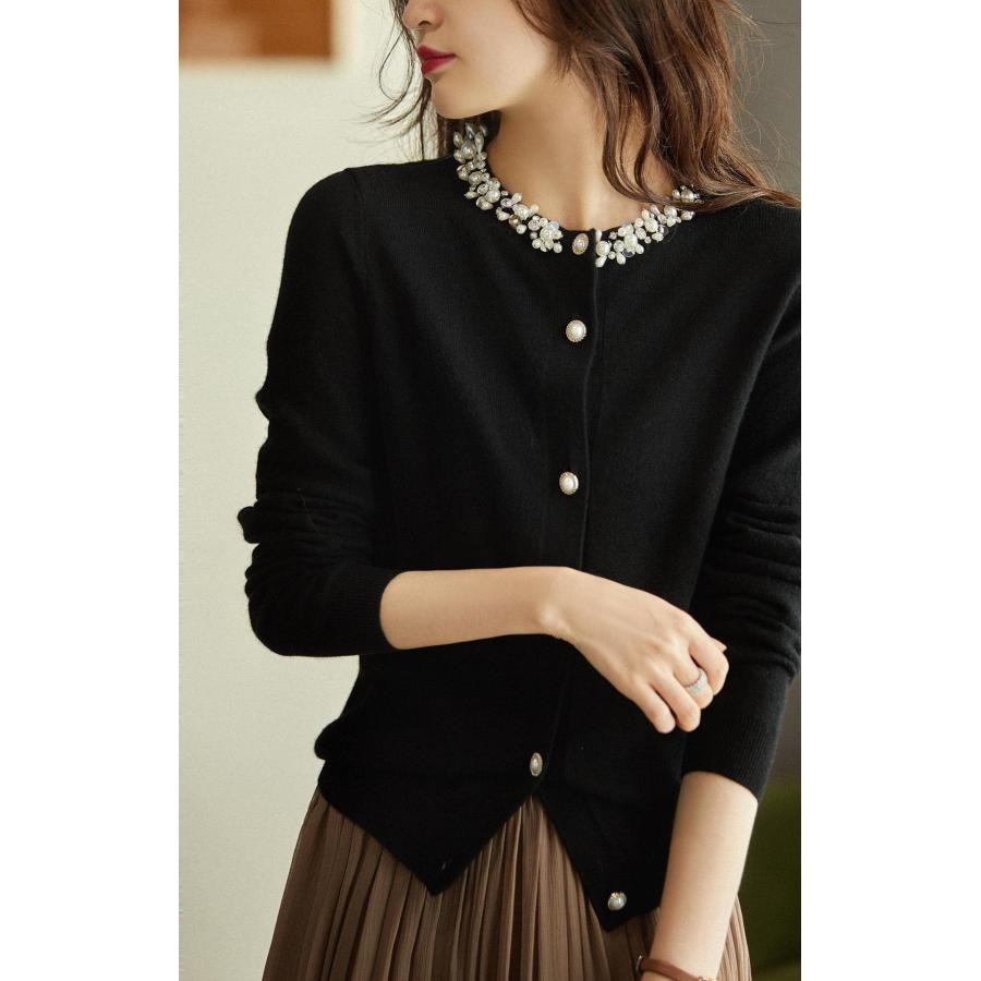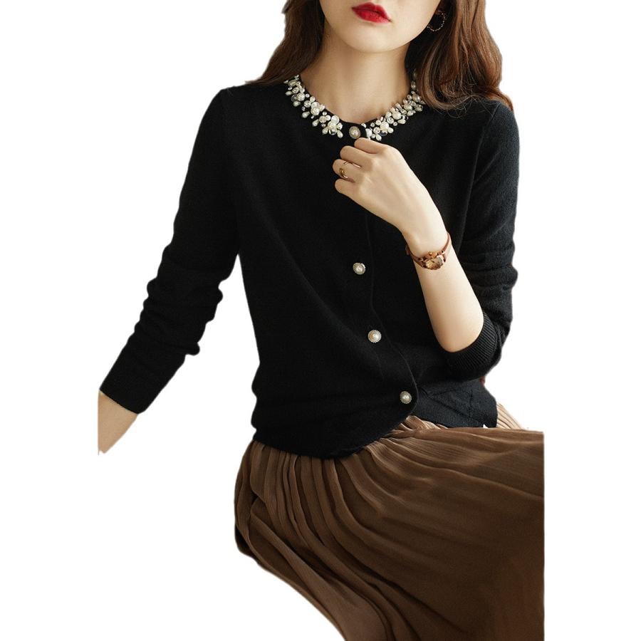 目玉商品超人気 ニットカーディガン レディース 秋冬 長袖ニットトップス 黒コーディガン パールネックカーディガン セーター ゆったり アウター 秋服 おしゃれ 上品