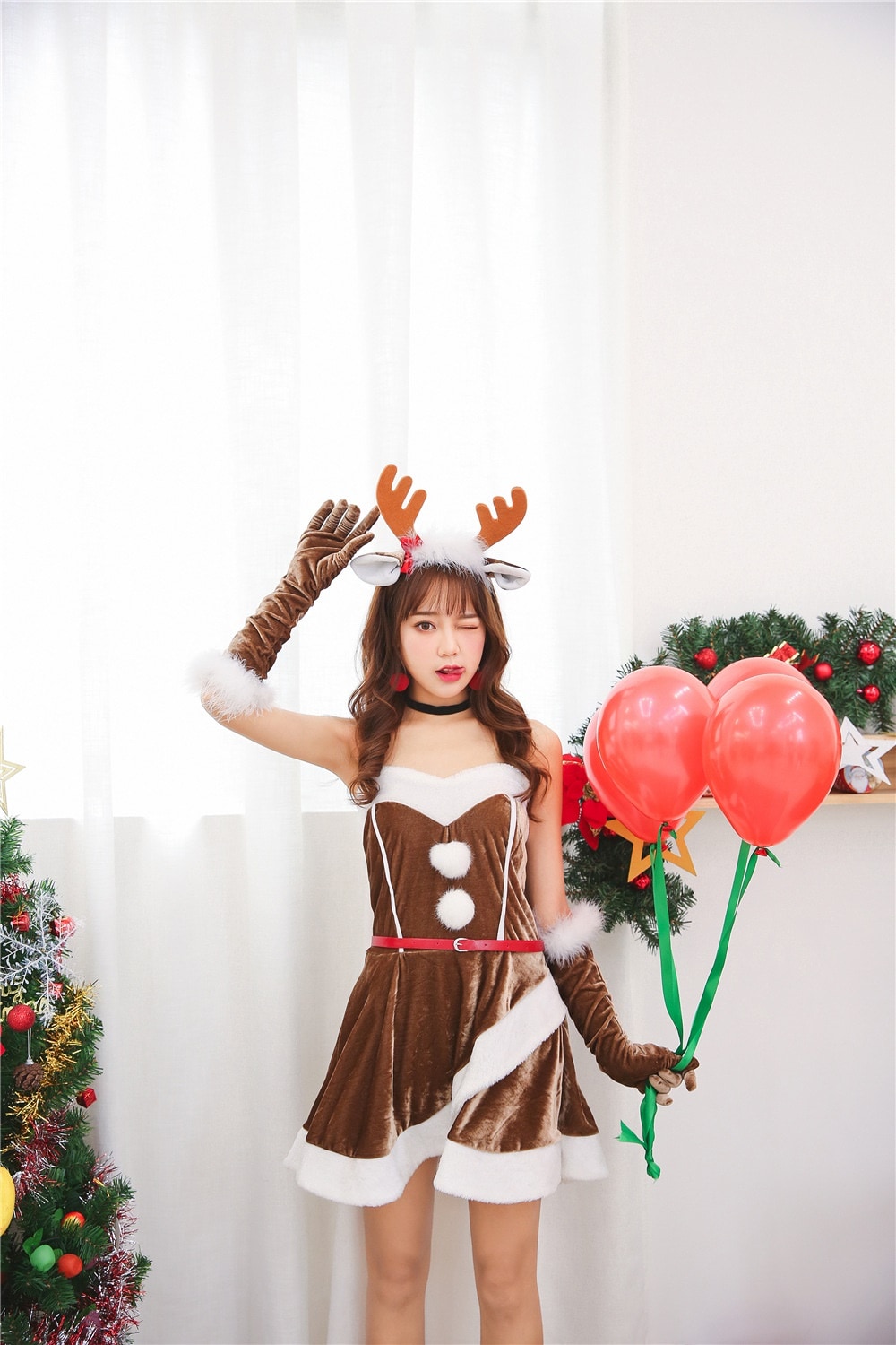 クリスマス衣装ワンピース トナカイ 新品 サンタ コスプレ 鹿 5点セットワンピース+首飾り+カチューシャ+手袋+ベルトサンタ衣装 レディース パーティ 学園祭 仮装 サンタガール 文化祭