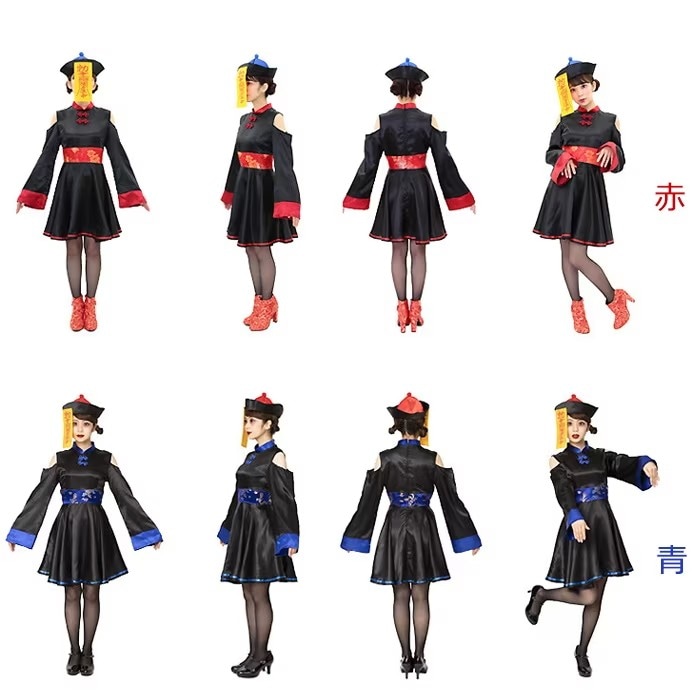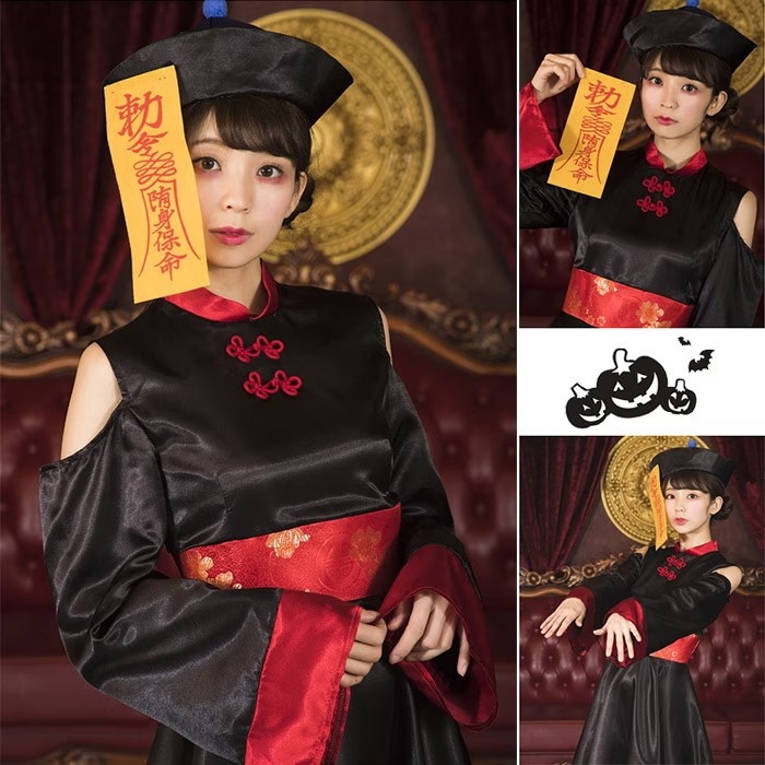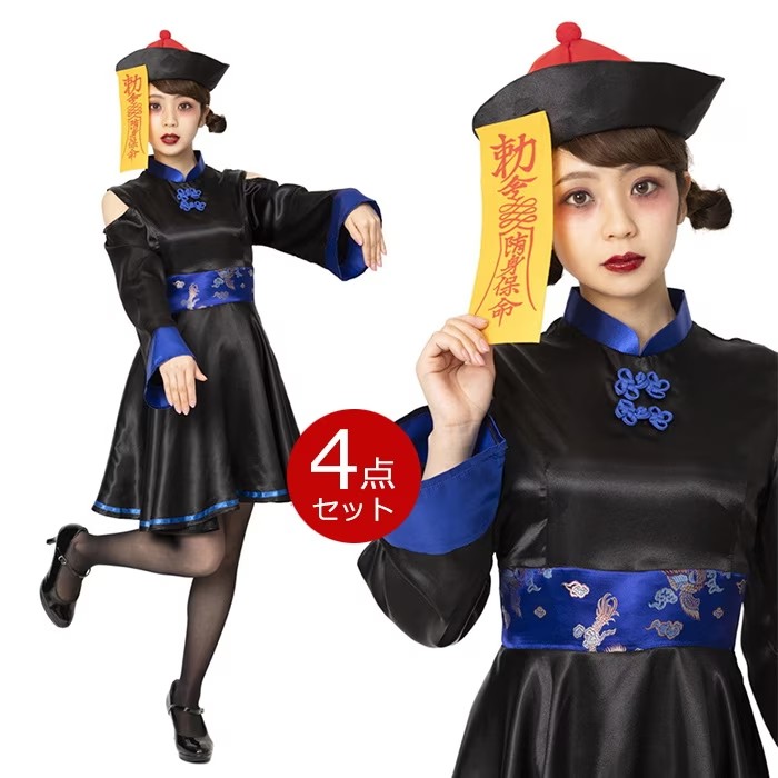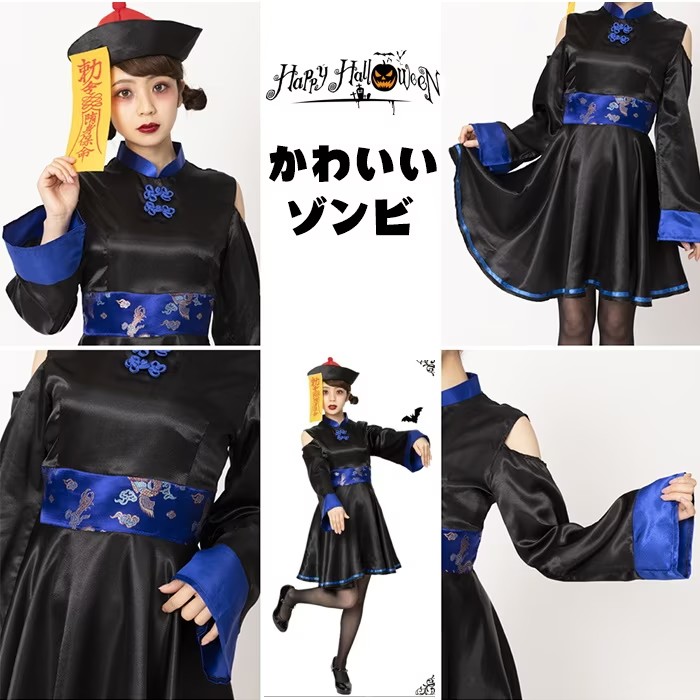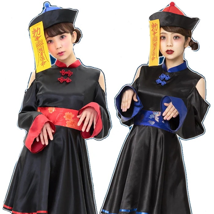 雰囲気抜群のチャイニーズキョンシーコスチューム 中華風のデザインがしっかり作りこまれていて、説得力強め。 黒基調でかっこいい。肩をチラ見せして可愛さもアピール 赤青二色なので、友達と色違いで合わせてもOK 並んでキュートなコスプレアイテムです