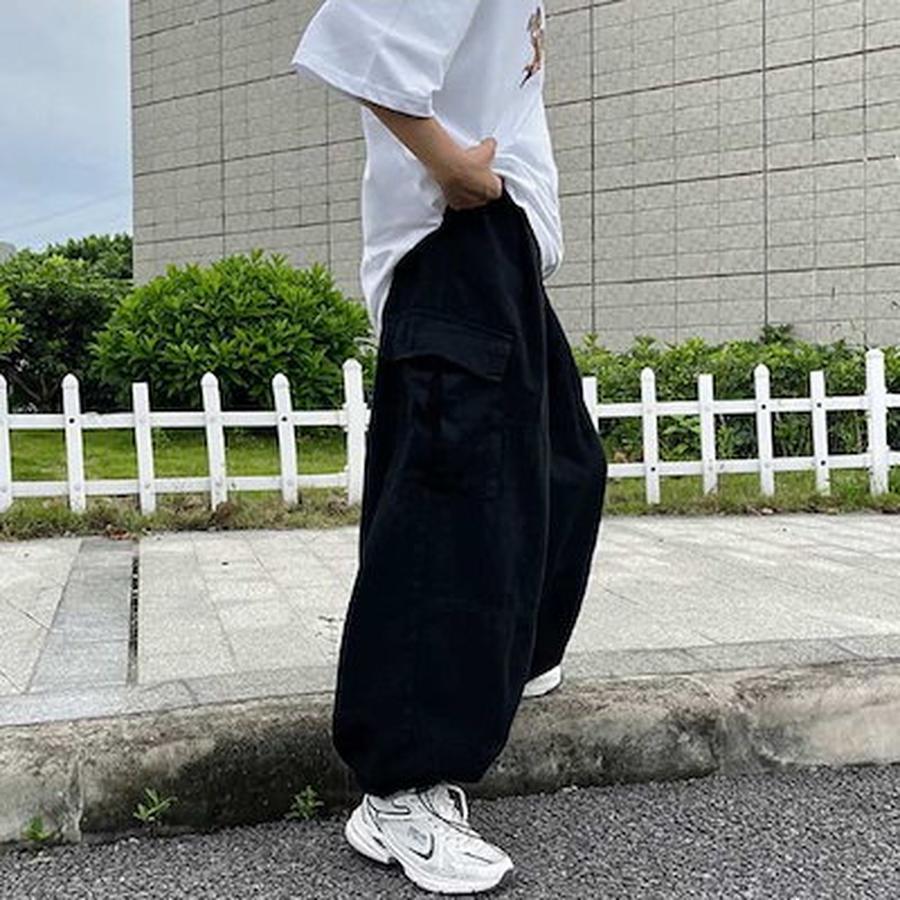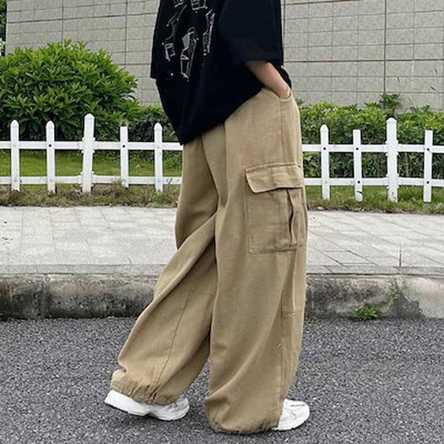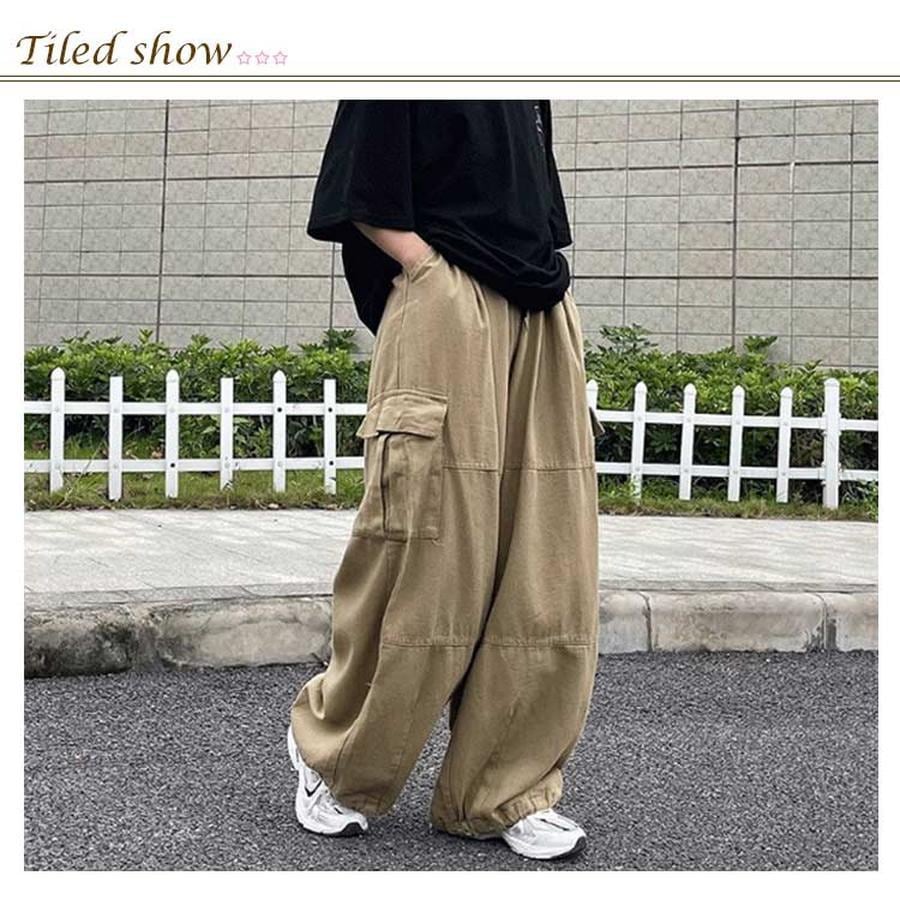 無地大きいサイズカーゴパンツメンズ春秋メンズサイドポケットワークパンツカジュアルパンツワイドシルエッ カーゴパンツ