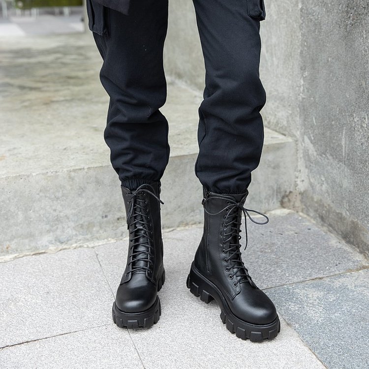 人気ロングブーツ 2024秋冬新作ミドルブーツ英国風サイドジッパー太ヒール機関車ブーツ厚底シューズ ショートブーツ レディース ブーティー マーディンブーツ