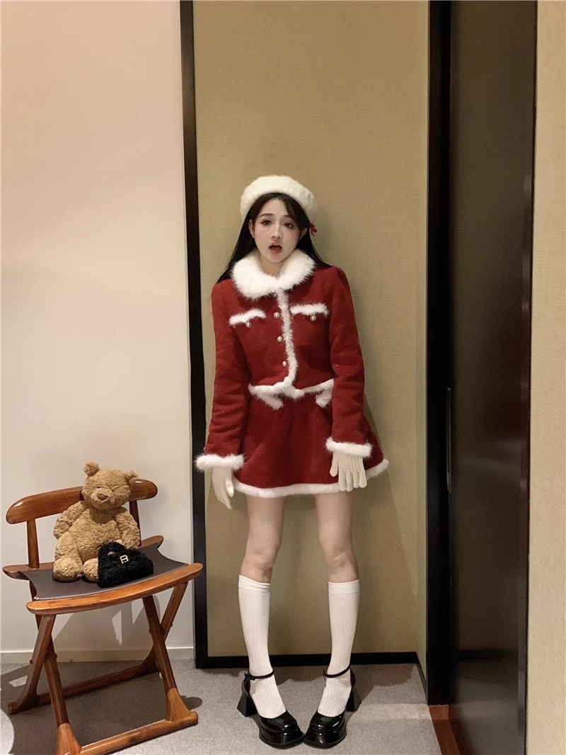 サンタコス レッド セット レディース クリスマス 2点セット脚魅せミニスカート セットアップ