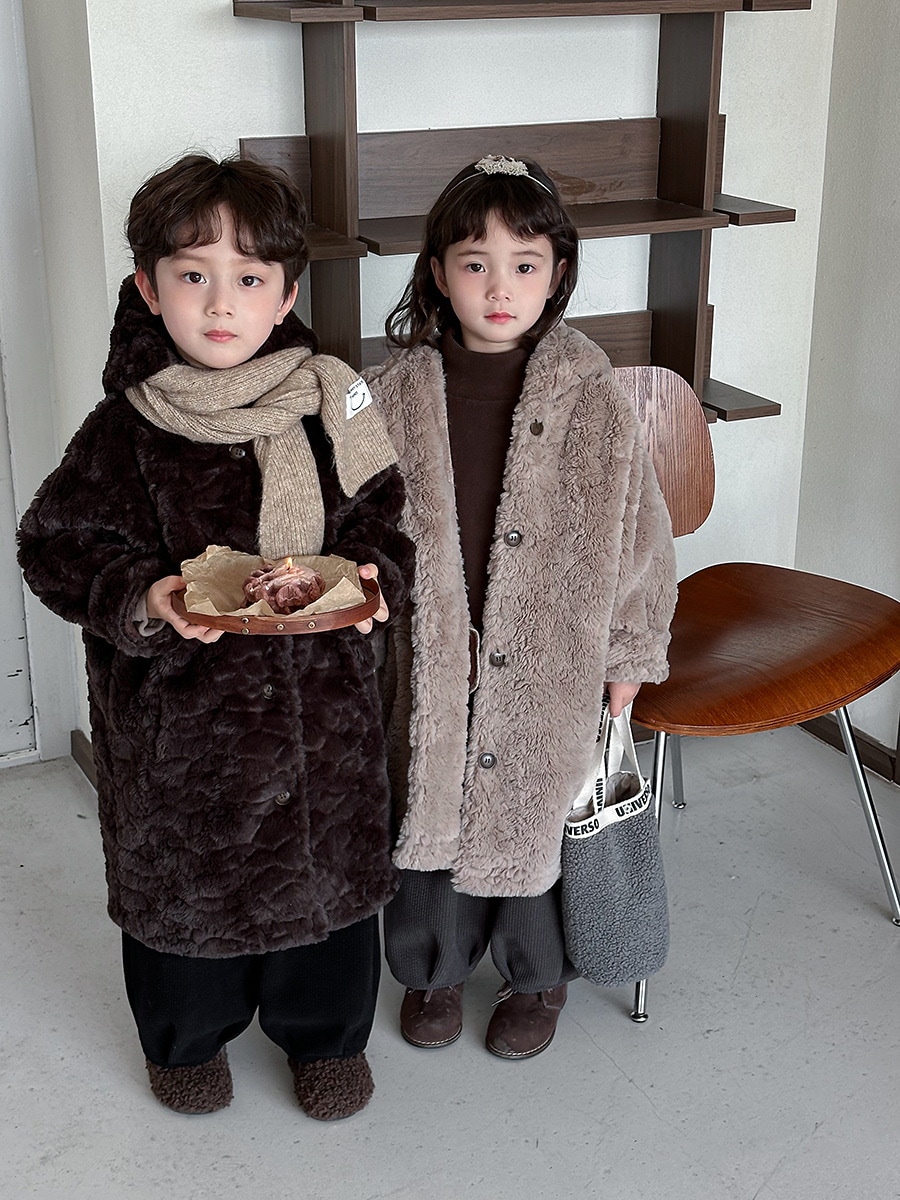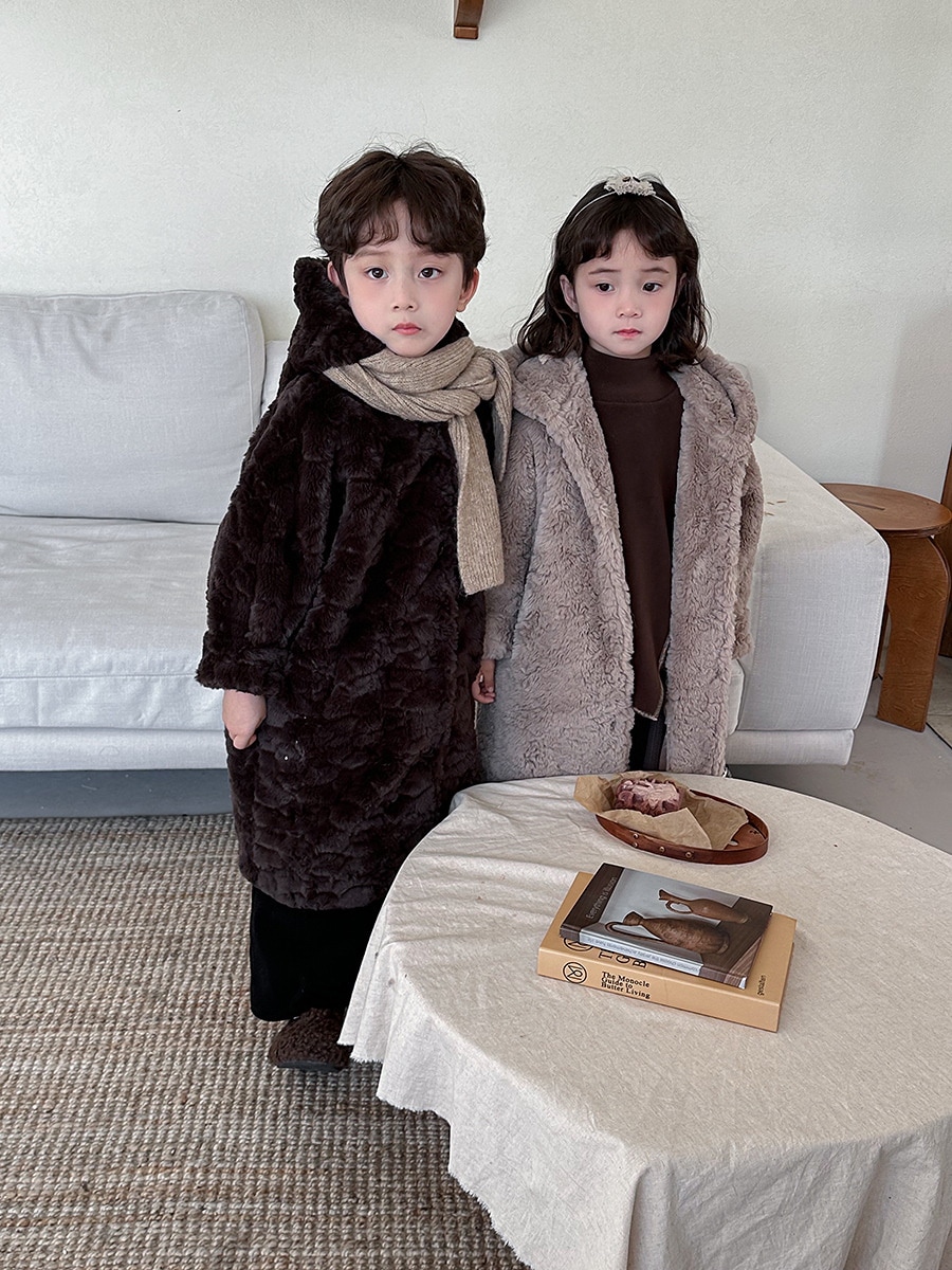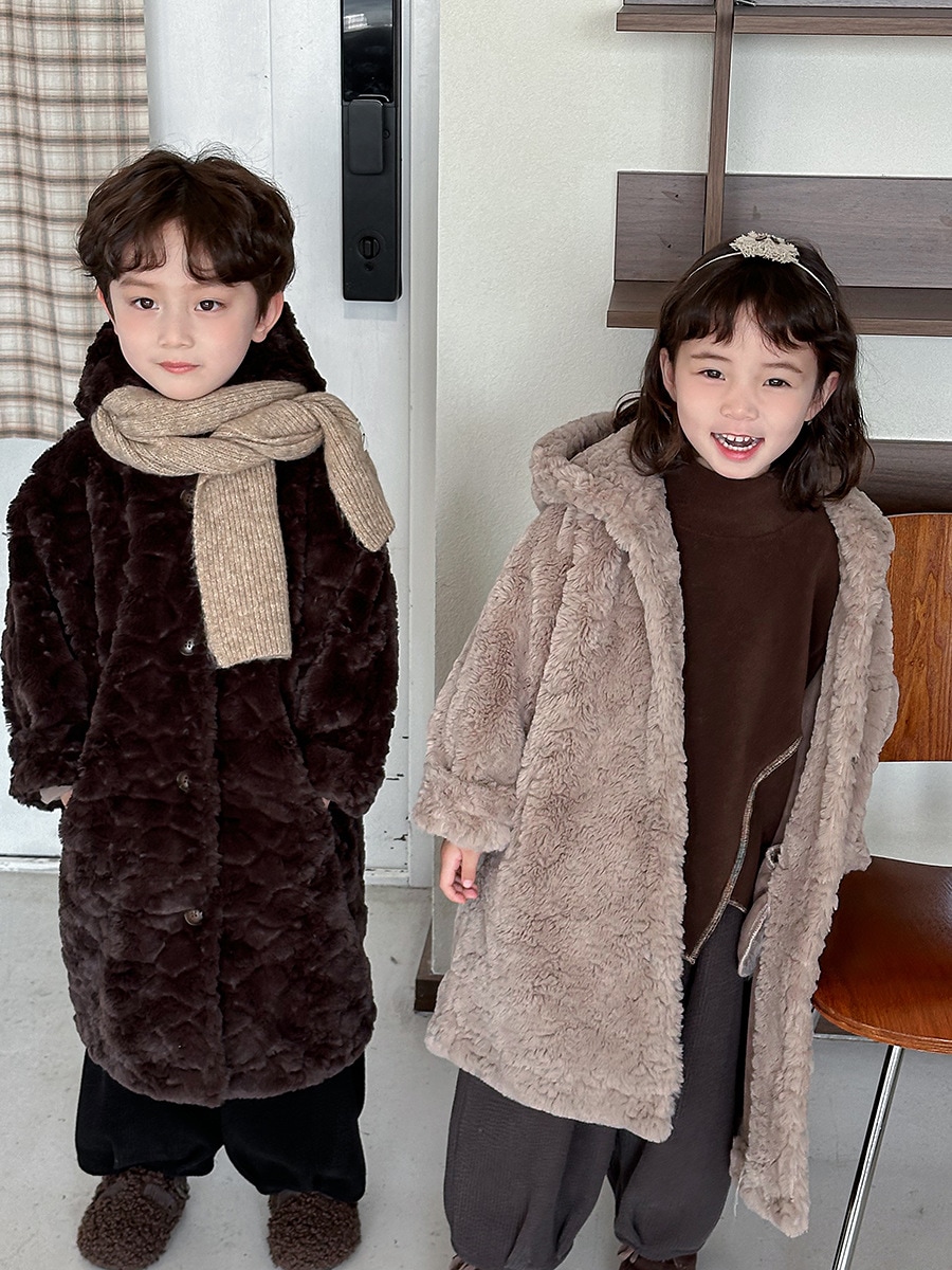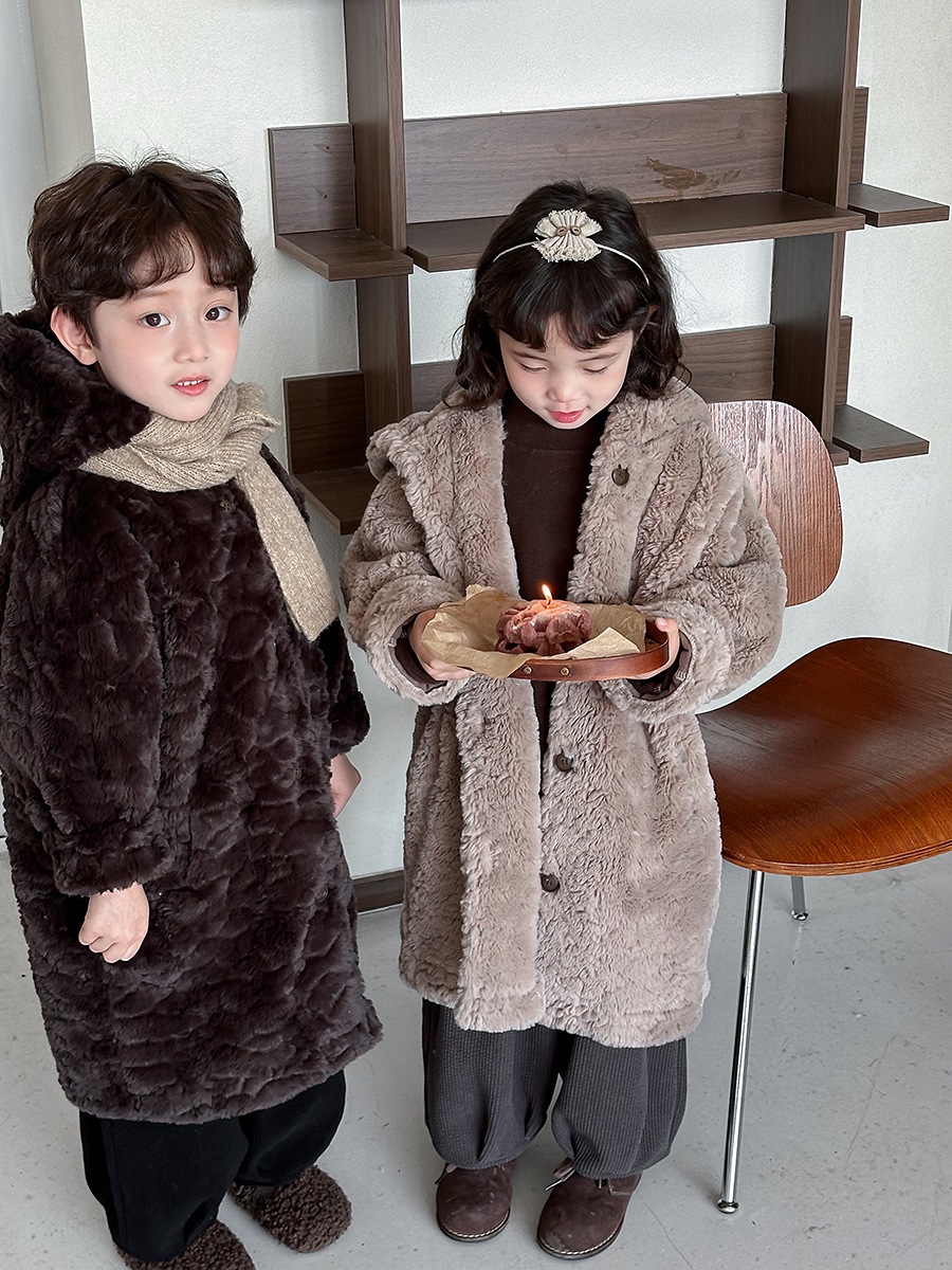 2024子供の冬ウサギの毛の長いコート男女の赤ちゃんの厚い帽子のコート アウター