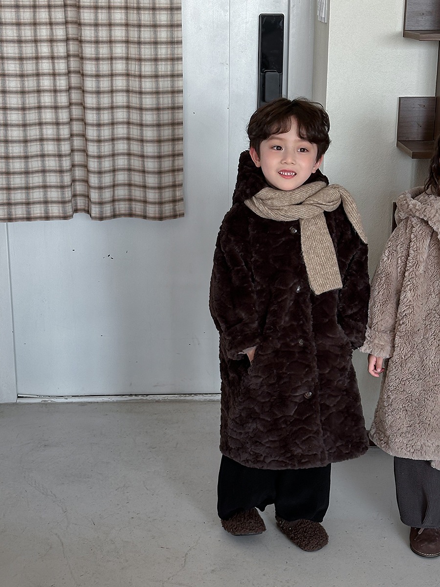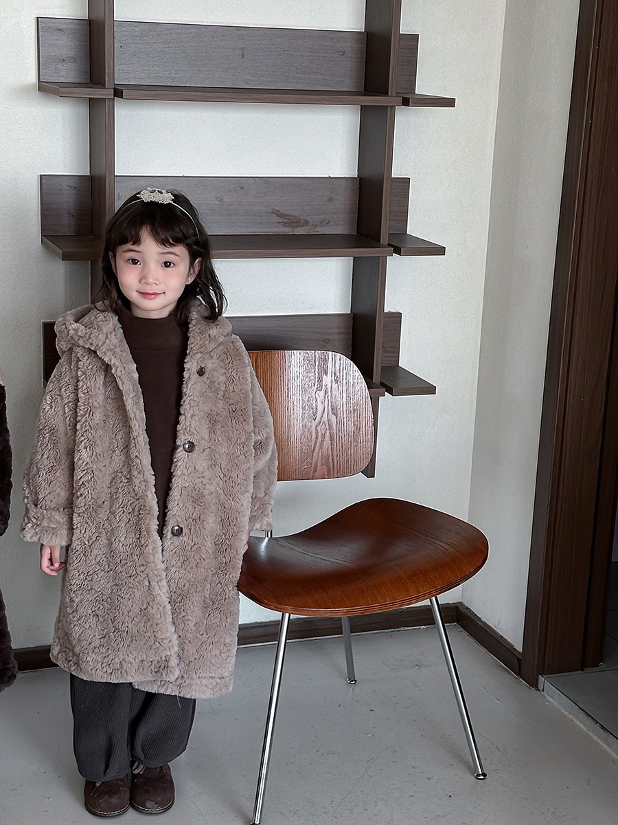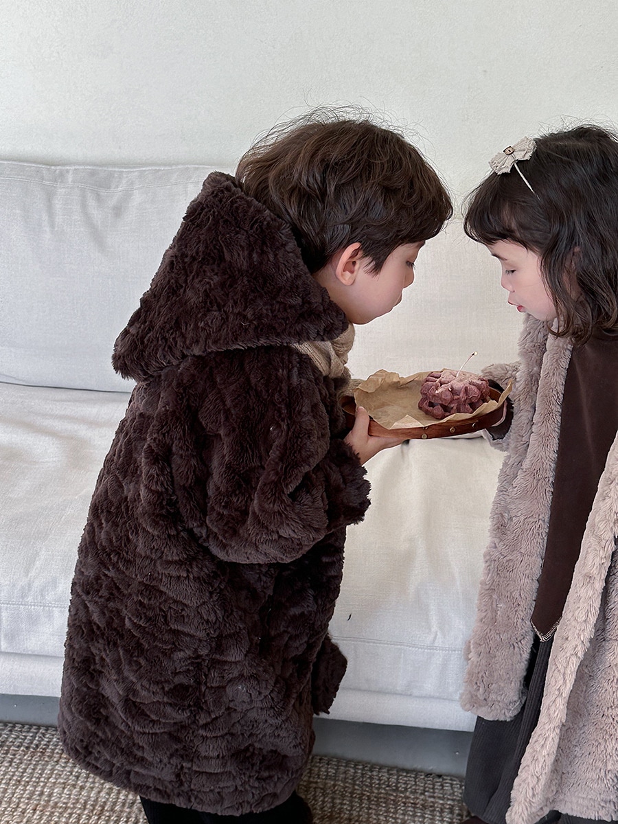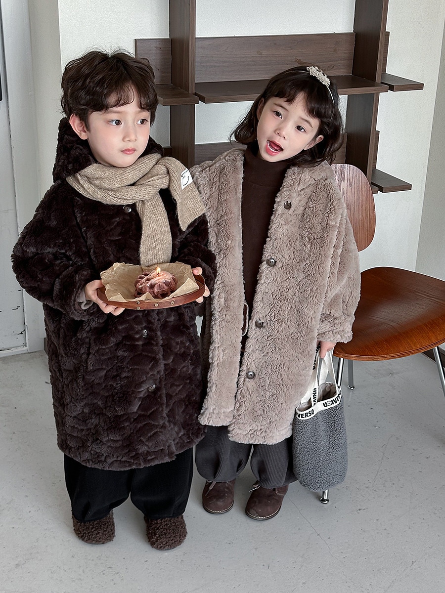 2024子供の冬ウサギの毛の長いコート男女の赤ちゃんの厚い帽子のコート アウター