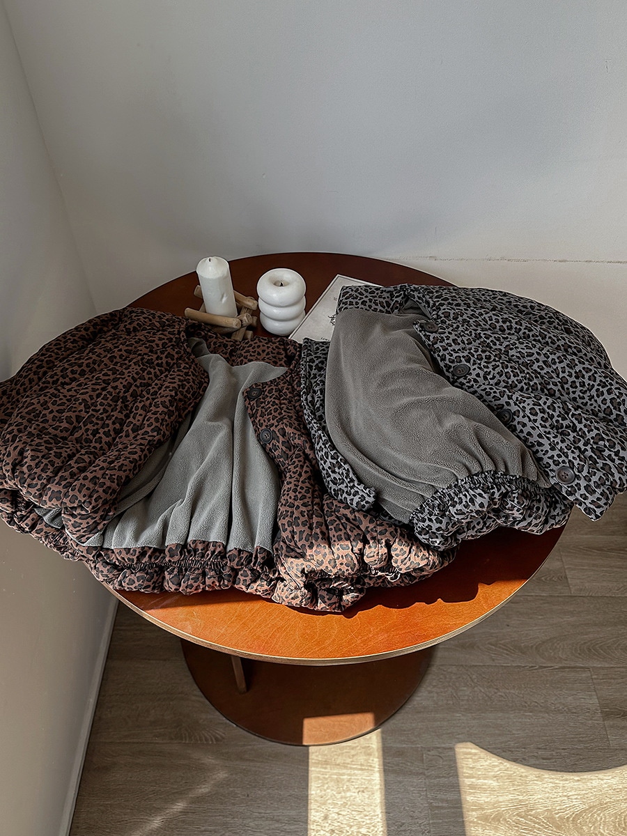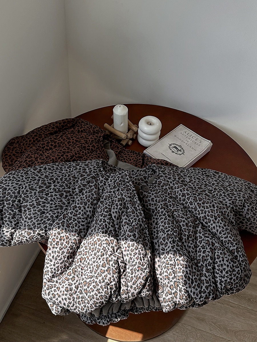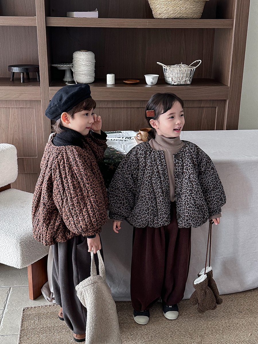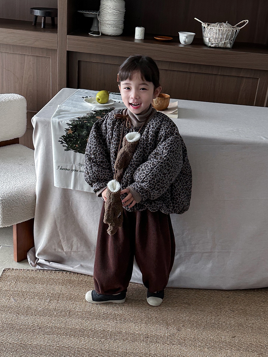 2024子供の冬の新作ヒョウ柄綿入れの中小童森系レトロなコートのパン服裏起毛 アウター