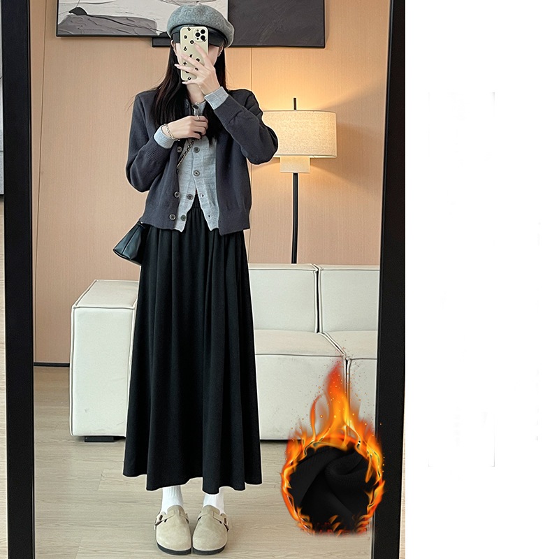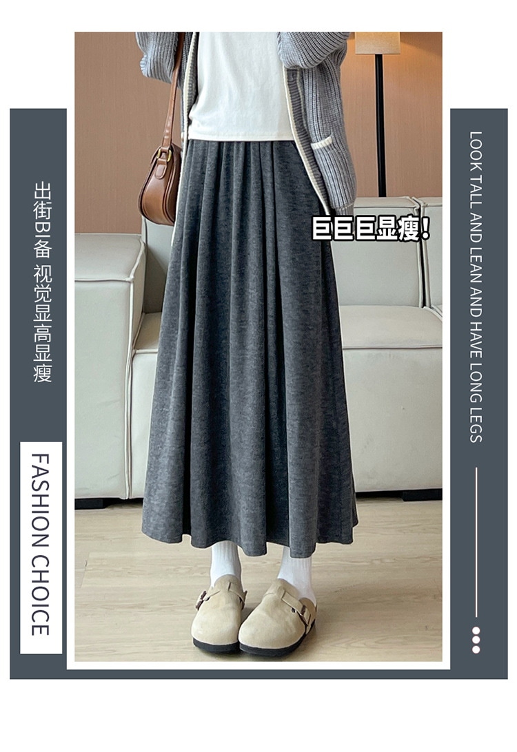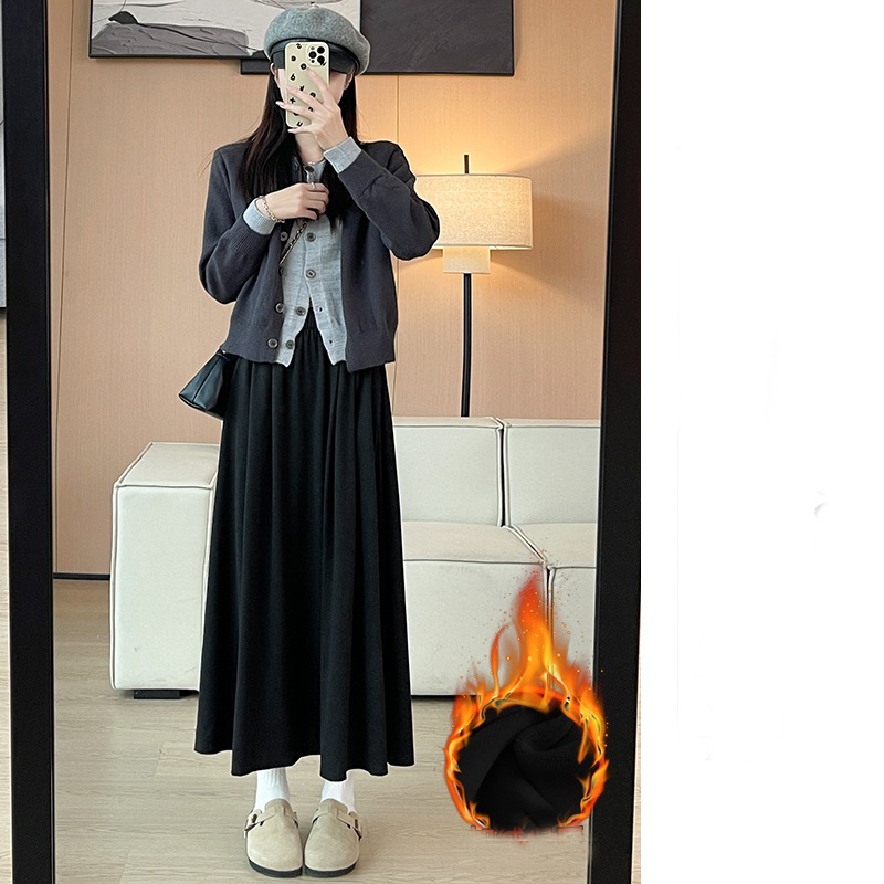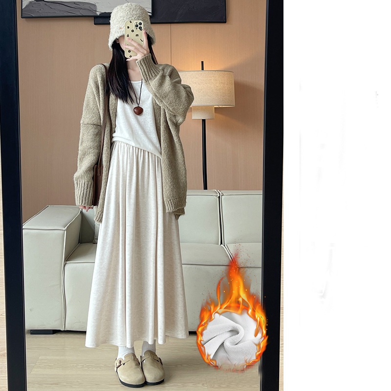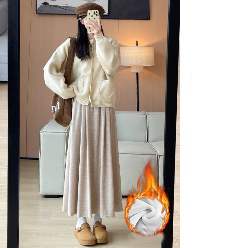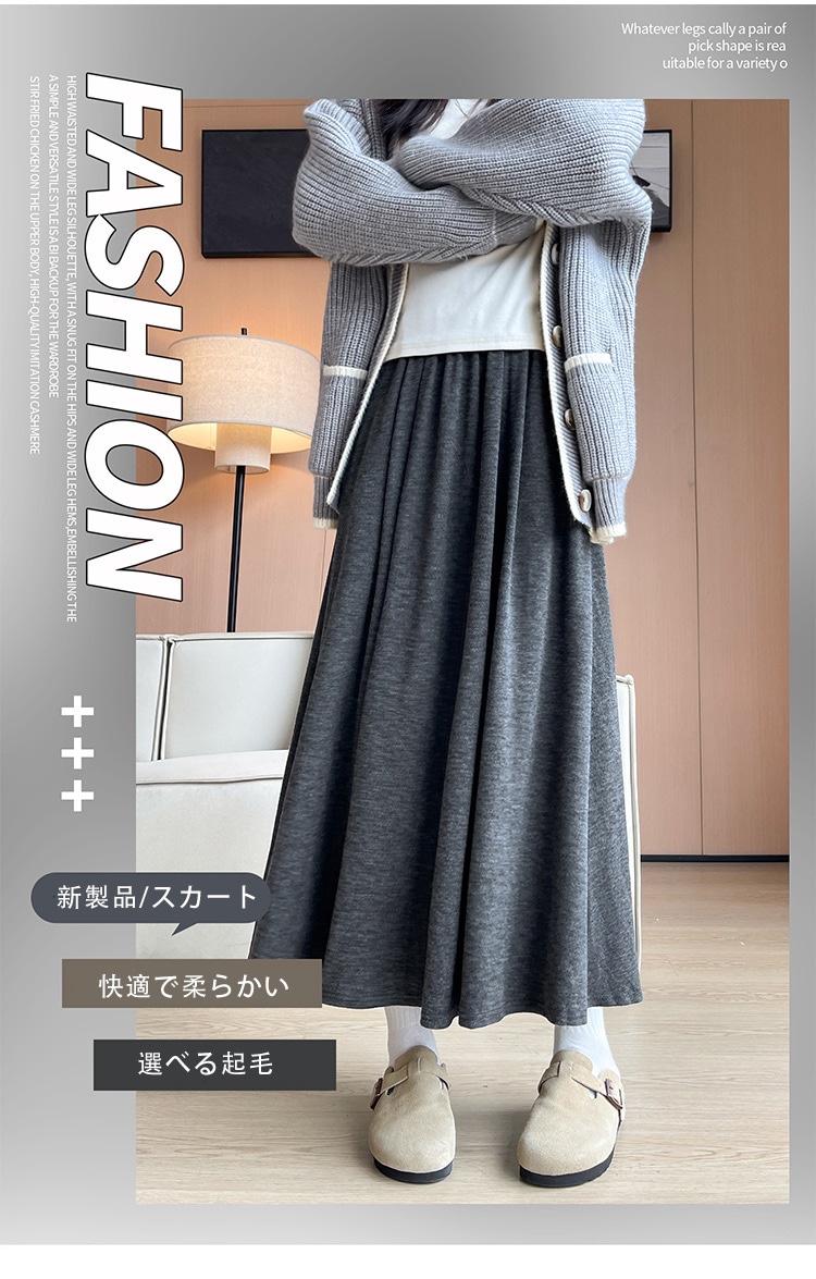 韓国ファッション 選べる起毛 裏起毛スカート 秋冬 着痩せ ロングスカート スカート ロング 厚手 フレアスカート ボトムス ゆったり 体型カバー 裏ボア ウエストゴム 暖かい