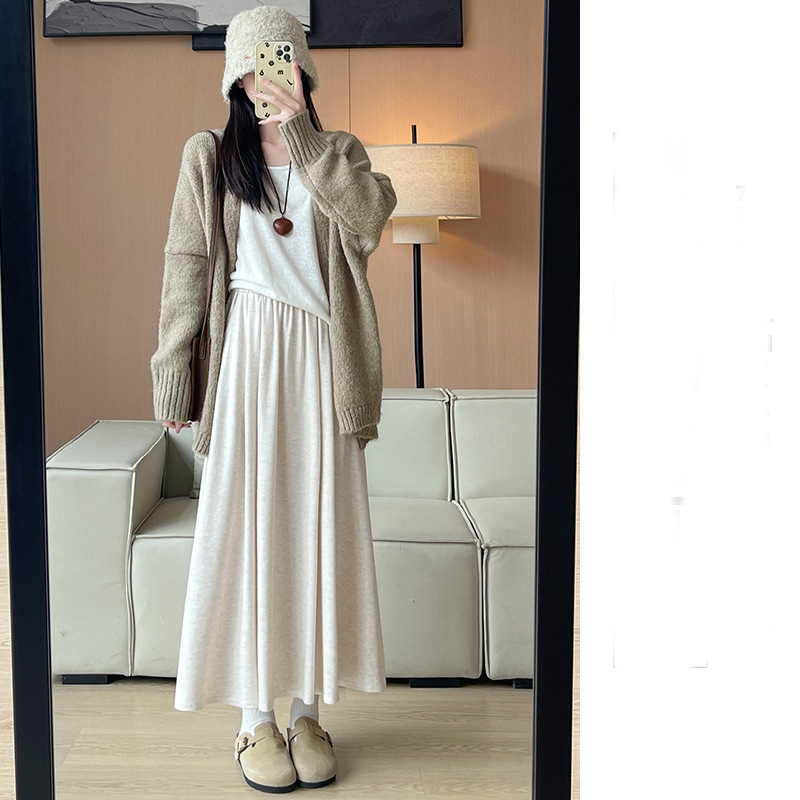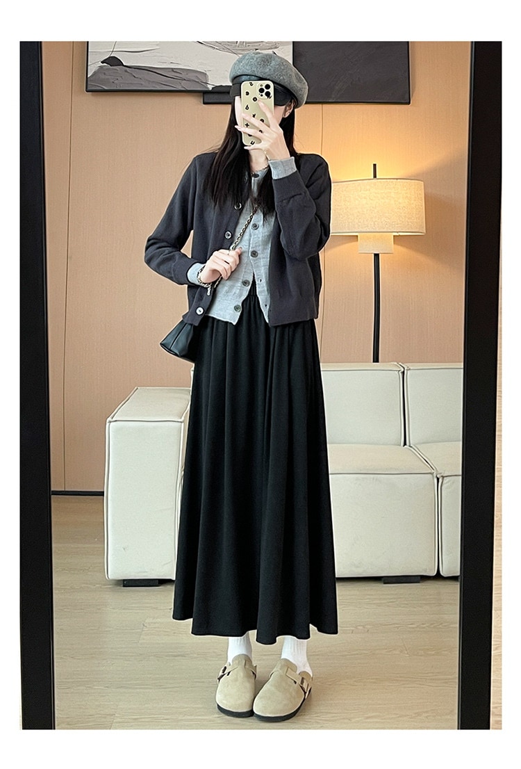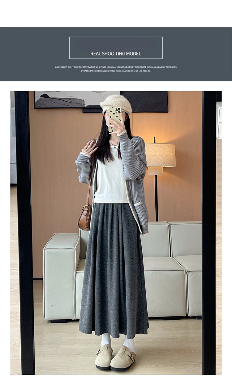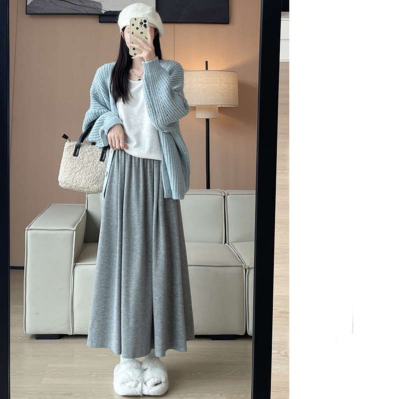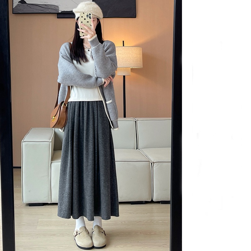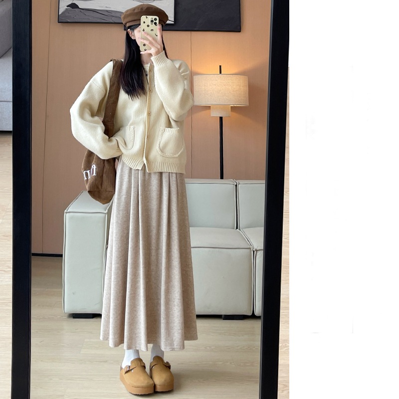 韓国ファッション 選べる起毛 裏起毛スカート 秋冬 着痩せ ロングスカート スカート ロング 厚手 フレアスカート ボトムス ゆったり 体型カバー 裏ボア ウエストゴム 暖かい