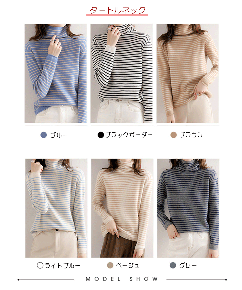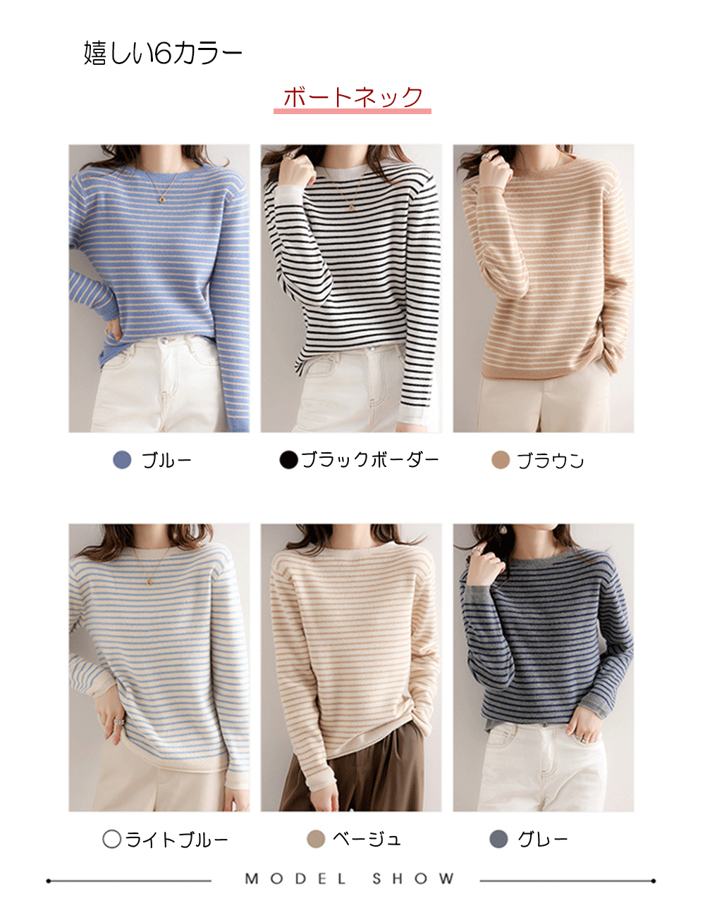 ニット セーター 2タイプネック ボートネック ハイネック タートルネック レディース ボーダー 長袖トップス 秋冬ニットセーター 薄手 防寒 着痩せ カジュアル