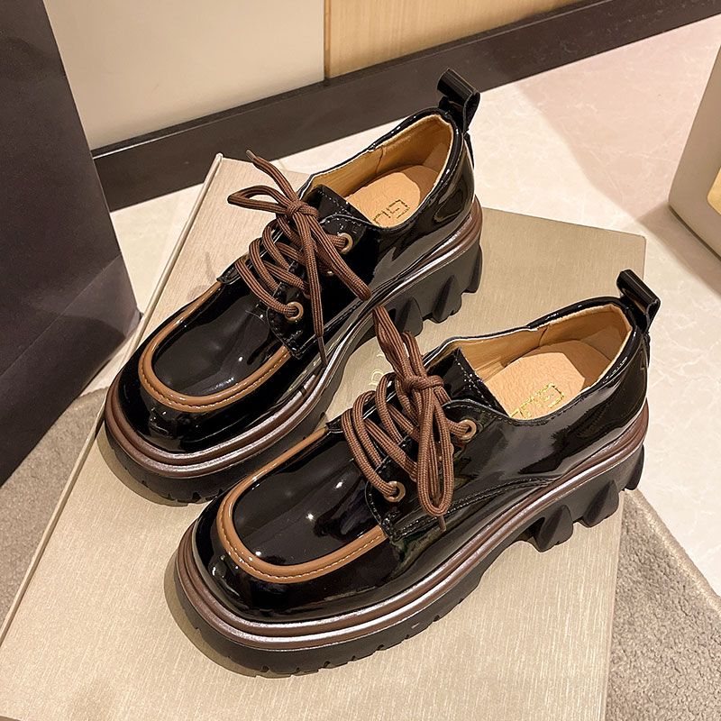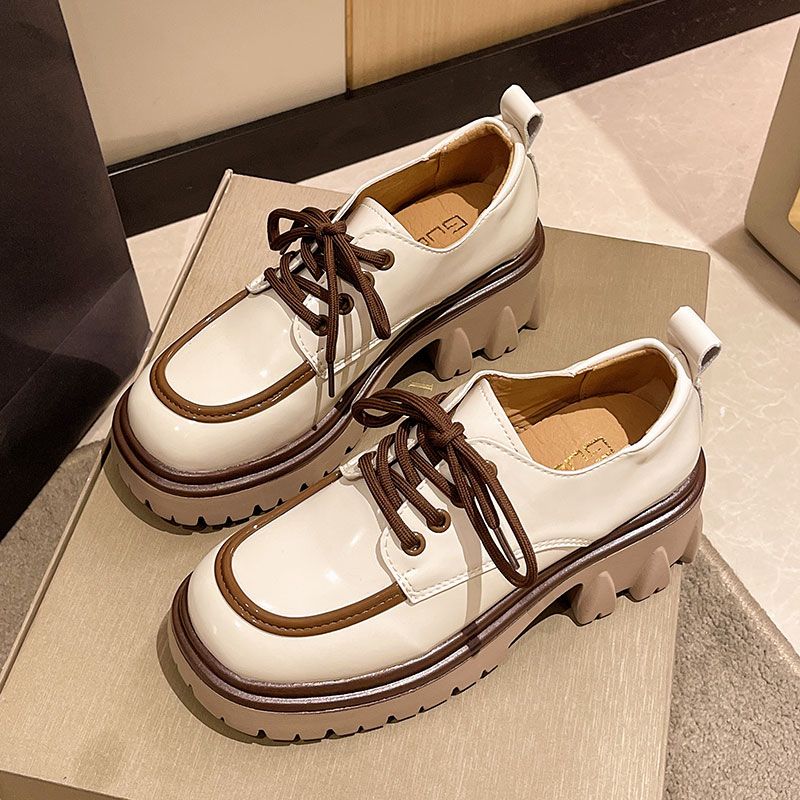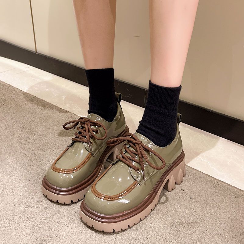 厚底シューズ 35-43 大きいサイズ 太ヒール 革靴 英国風 レースアップ 製 メリージェーンシューズ 42 レディース 韓国ファッション