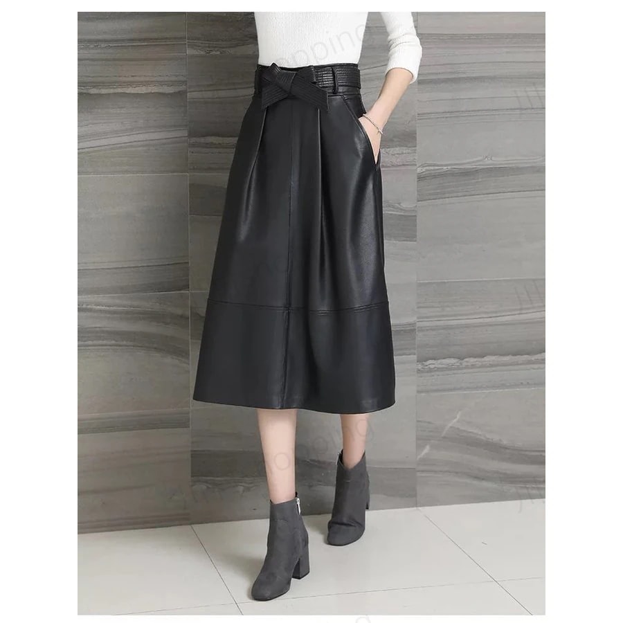 レザースカート 本革 ラムレザー ボトムス フレアスカート スカート Aライン 通勤着痩せ ボトムス ミディアムスカート