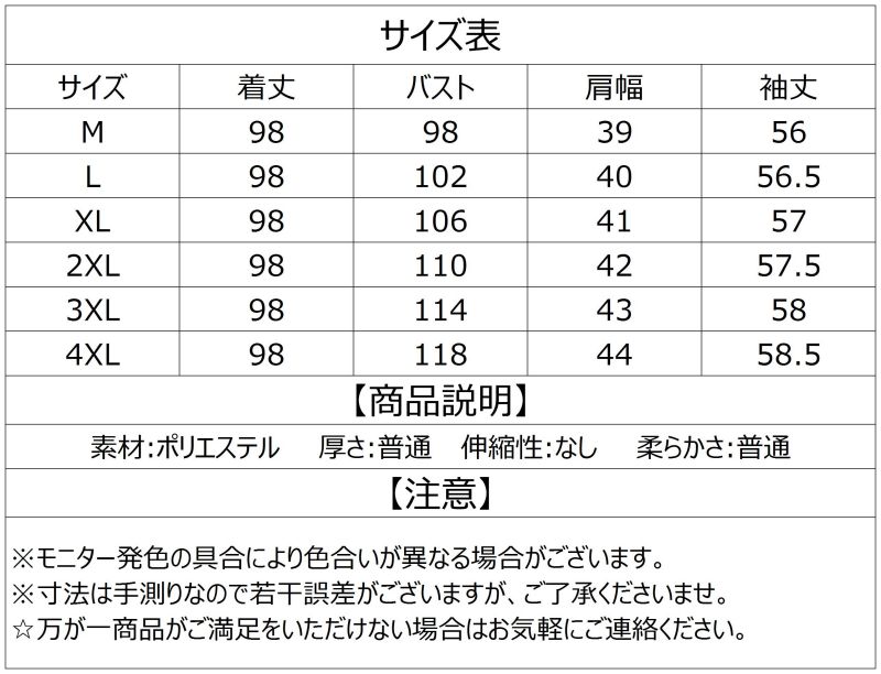 カラー: M L XL 2XL 3XL 4XL